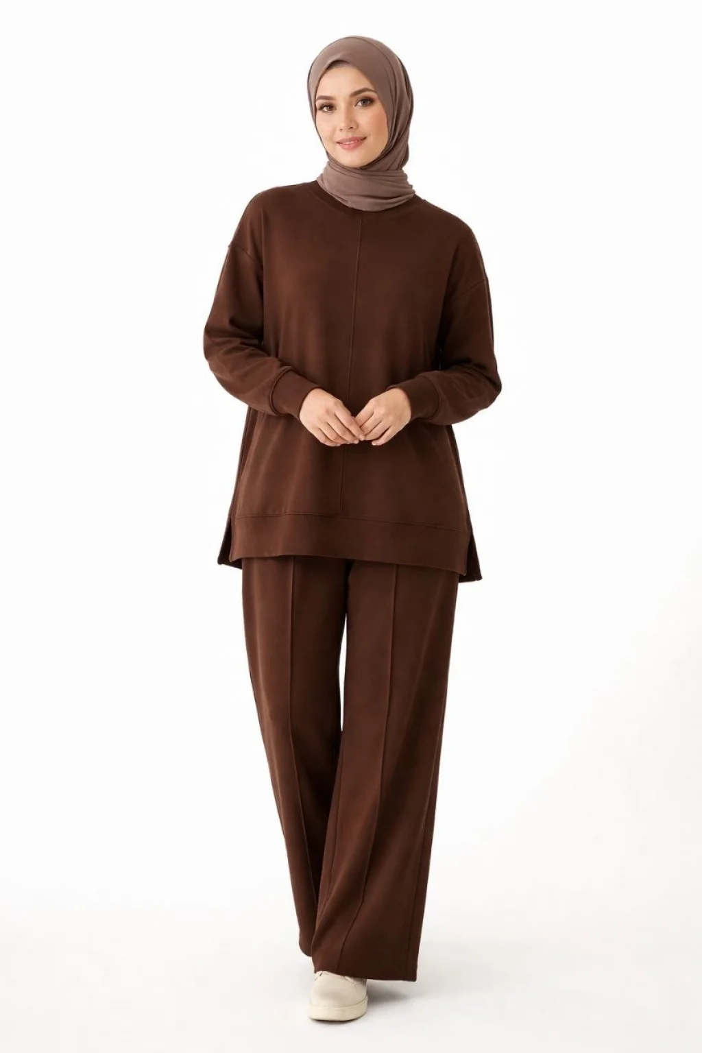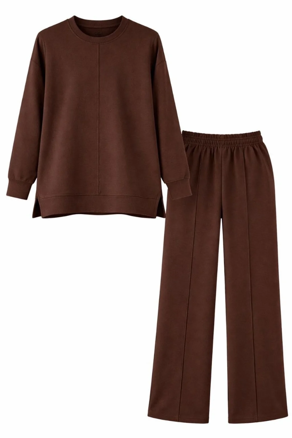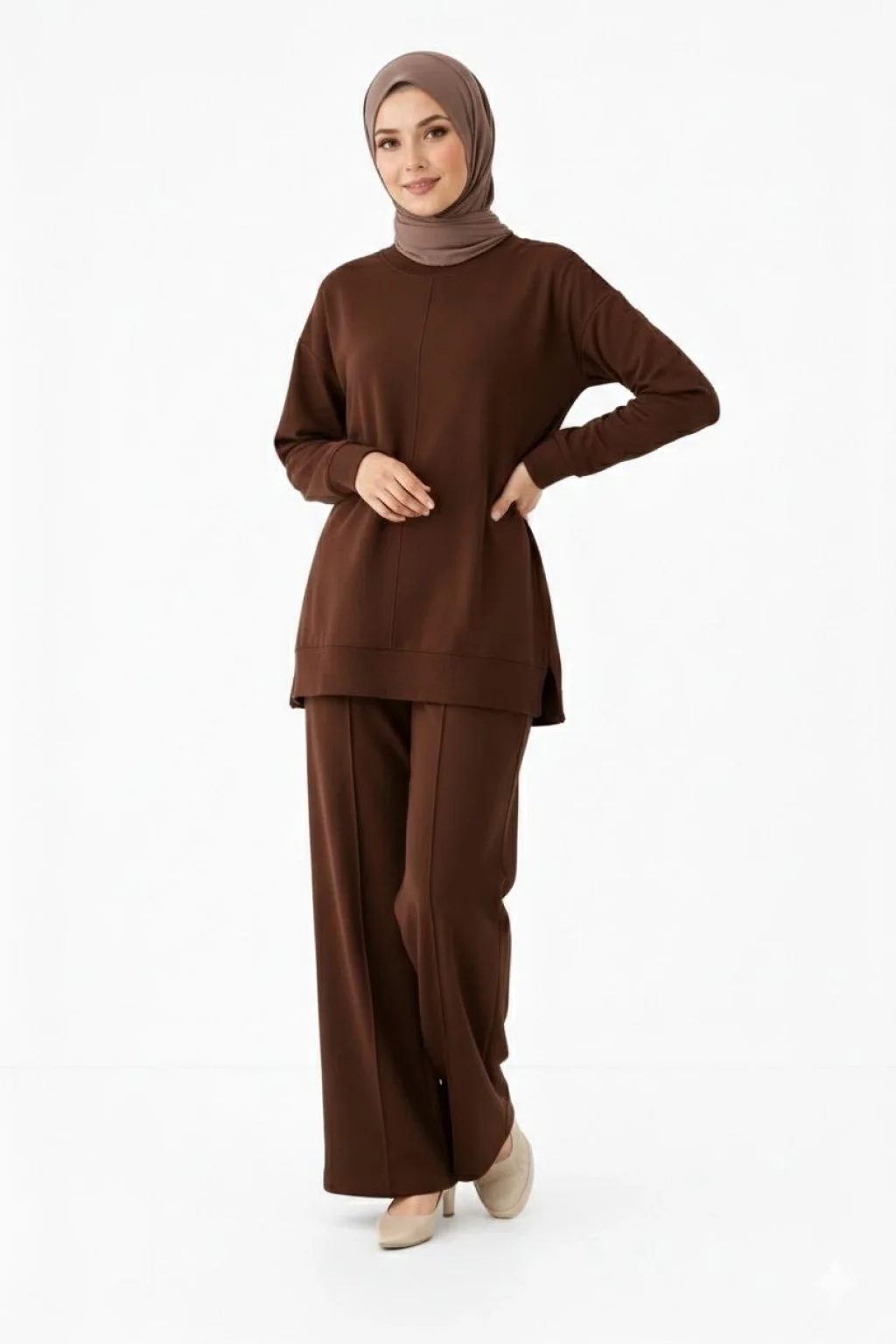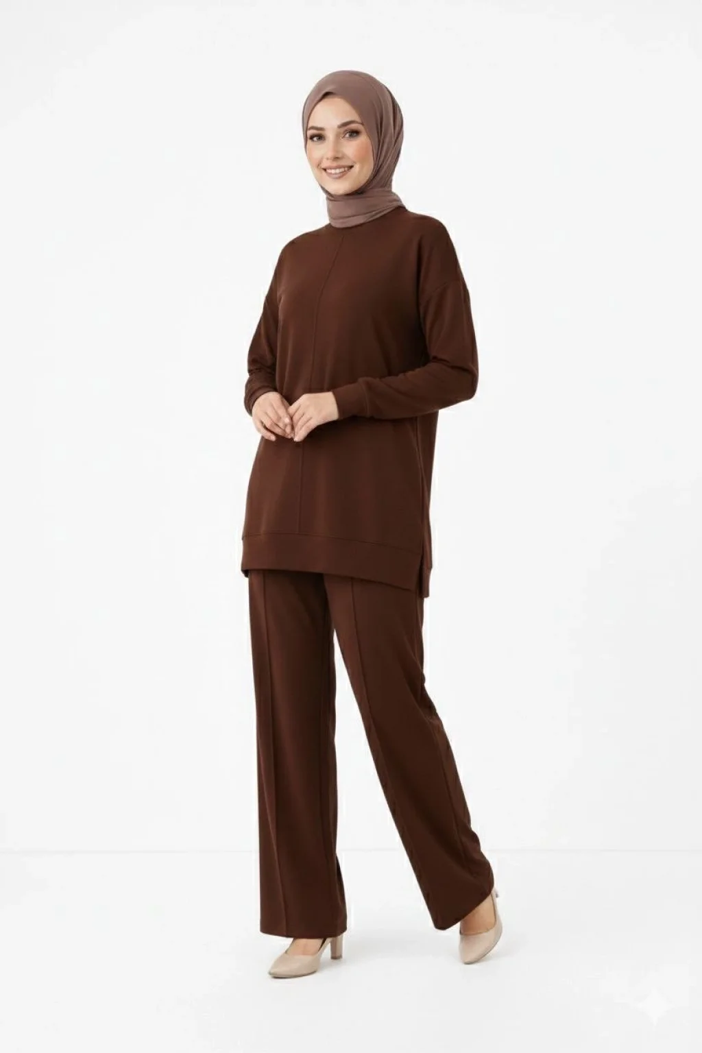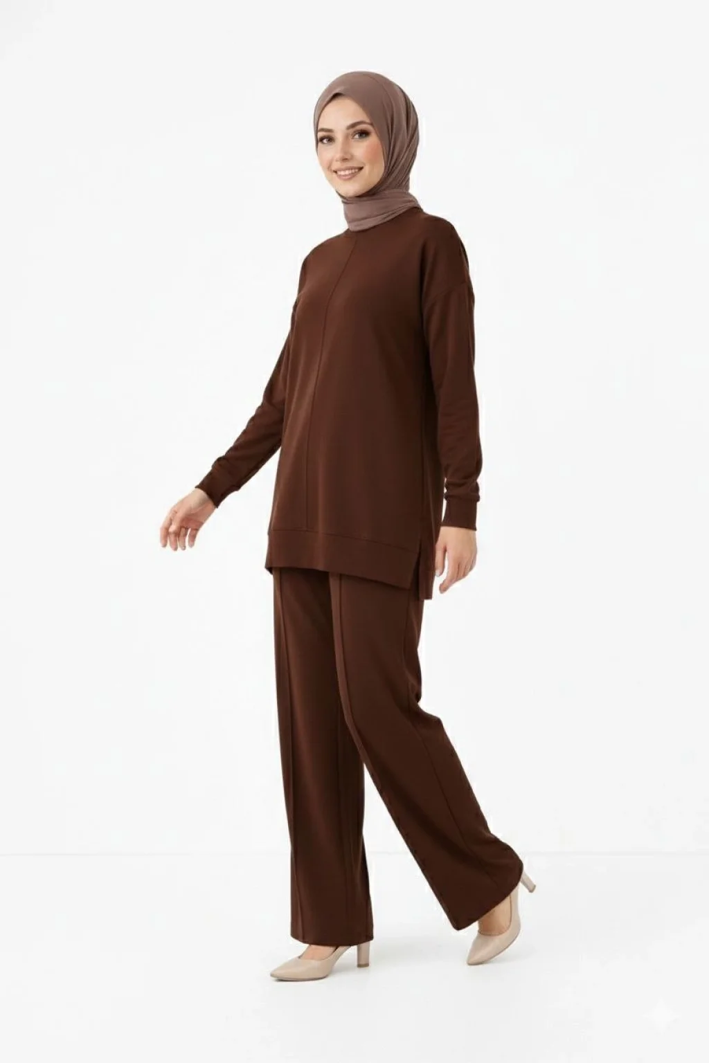Kadın T-Shirt Bisiklet Yaka Slim Fit Likralı Tişört Günlük Basic Body - Kahverengi