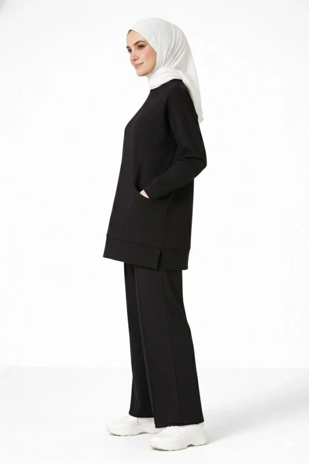 Kadın T-Shirt Bisiklet Yaka Slim Fit Likralı Tişört Günlük Basic Body - Siyah