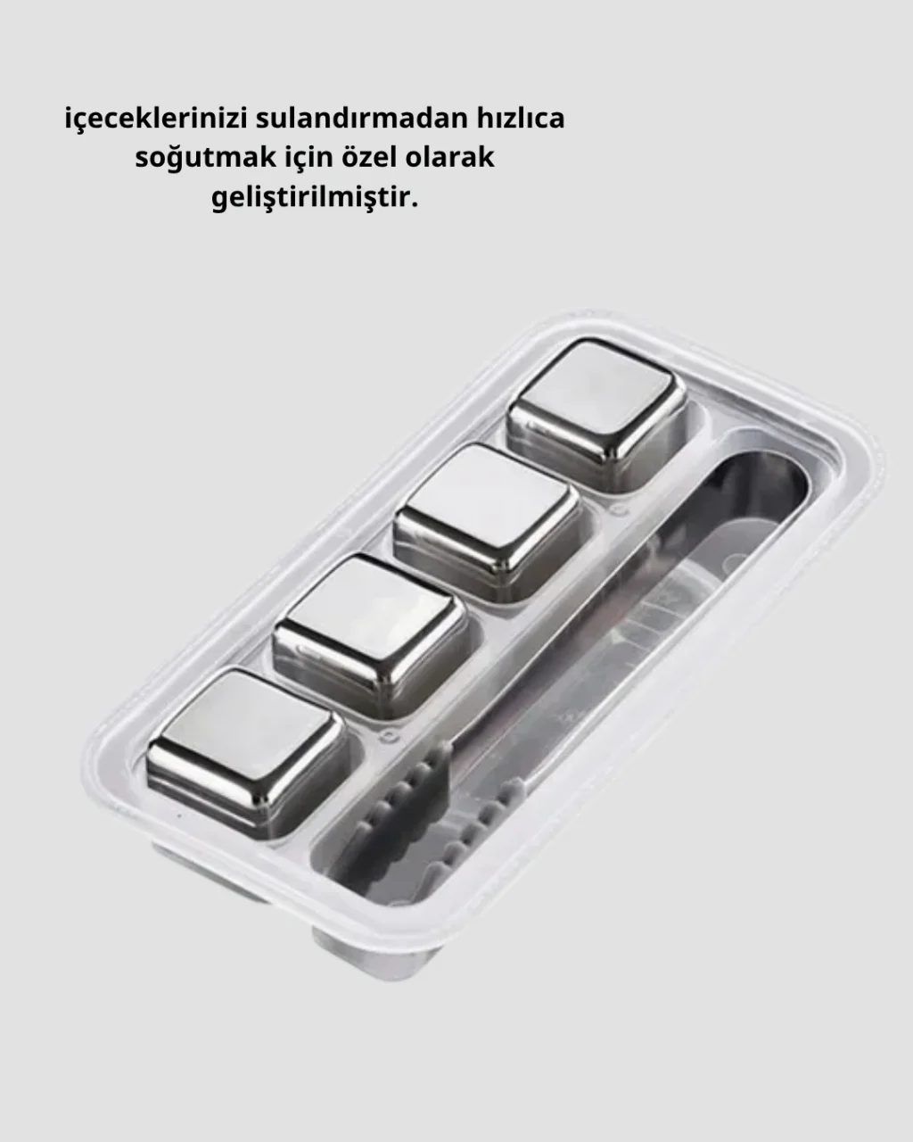 Paslanmaz Çelik Metal Buz Küpü Seti, içeceklerinizi sulandırmadan soğutmak için mükemmel bir çözümdür.Yüksek kaliteli 304 paslanmaz çelik malzemeden üretilen bu buz küpleri, uzun ömürlü kullanım sunarken hijyenik yapısıyla da güven verir.Klasik buz küplerinin aksine, erime yapmadığı için içeceklerin tadını ve kıvamını bozmaz.Kutu içeriğinde yer alan paslanmaz çelik buz klipsi, küpleri doğrudan bardağınıza hijyenik şekilde yerleştirmenizi sağlar.Bu sayede hem kullanımı kolaydır hem de sunum açısından zarif bir görünüm oluşturur.Tekrar kullanılabilir olması, çevre dostu bir alternatif sunarken aynı zamanda uzun vadede ekonomik bir çözüm oluşturur.İçeceklerinizi hızlı ve etkili bir şekilde soğutur; ister viski, şarap, su ya da meşrubat olsun, her ortamda ideal ısı dengesini sağlar.Evde, ofiste ya da piknikte rahatlıkla kullanabileceğiniz bu set, içecek sunumlarınızı bir üst seviyeye taşır.Modern tasarımı ve üstün soğutma performansıyla Metal Buz Küpü Seti, hem kendiniz hem de sevdikleriniz için şık ve kullanışlı bir seçimdir.