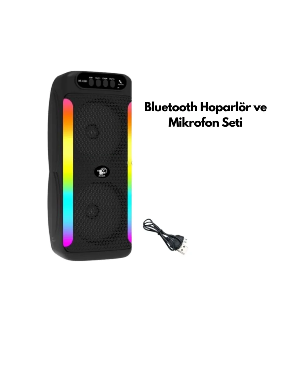 RGB ışıklı çift hoparlörlü taşınabilir Bluetooth hoparlör, hem güçlü ses kalitesi hem de şık tasarımıyla öne çıkar. 4 inçlik iki hoparlör, yüksek ses gücü ve etkileyici bas performansı sunar. Bluetooth teknolojisi sayesinde telefon, tablet veya bilgisayarınızla kablosuz olarak eşleşebilir. USB, SD kart ve AUX girişleri ile farklı müzik kaynaklarını kullanabilirsiniz. Dahili FM radyo fonksiyonu ile istediğiniz zaman radyo dinleyebilirsiniz. Ürünle birlikte gelen mikrofon, karaoke yapmanızı sağlar ve özel günlerinize renk katar. RGB ışıklar, müziğin ritmine uyum sağlayarak atmosferinizi zenginleştirir. Şarjlı bataryası, uzun süreli kablosuz kullanım imkanı sunar. Hafif ve taşınabilir yapısı ile her ortamda kolayca kullanılabilir. Dayanıklı malzemelerden üretilmiş gövdesi, uzun yıllar kullanım imkanı verir. Evde, açık havada veya seyahatte eğlenceli anlar yaşamak isteyen herkes için mükemmel bir tercihtir.