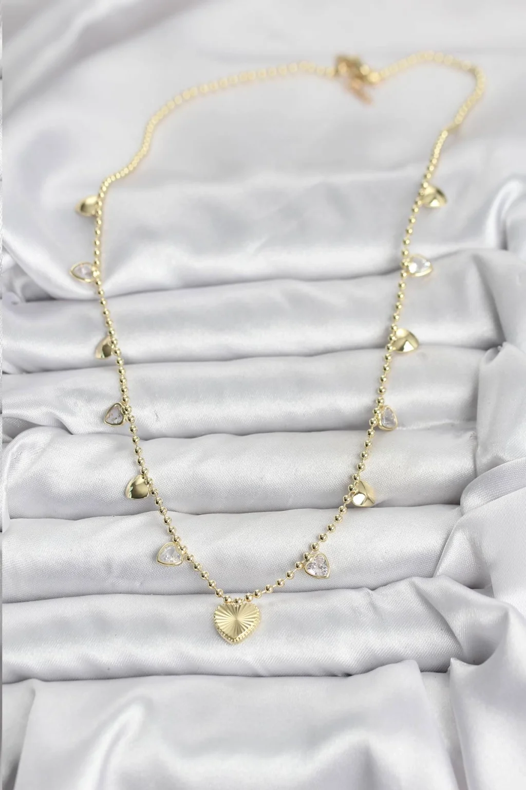 Pirinç Gold Renk Kalp Model Kadın Kolye