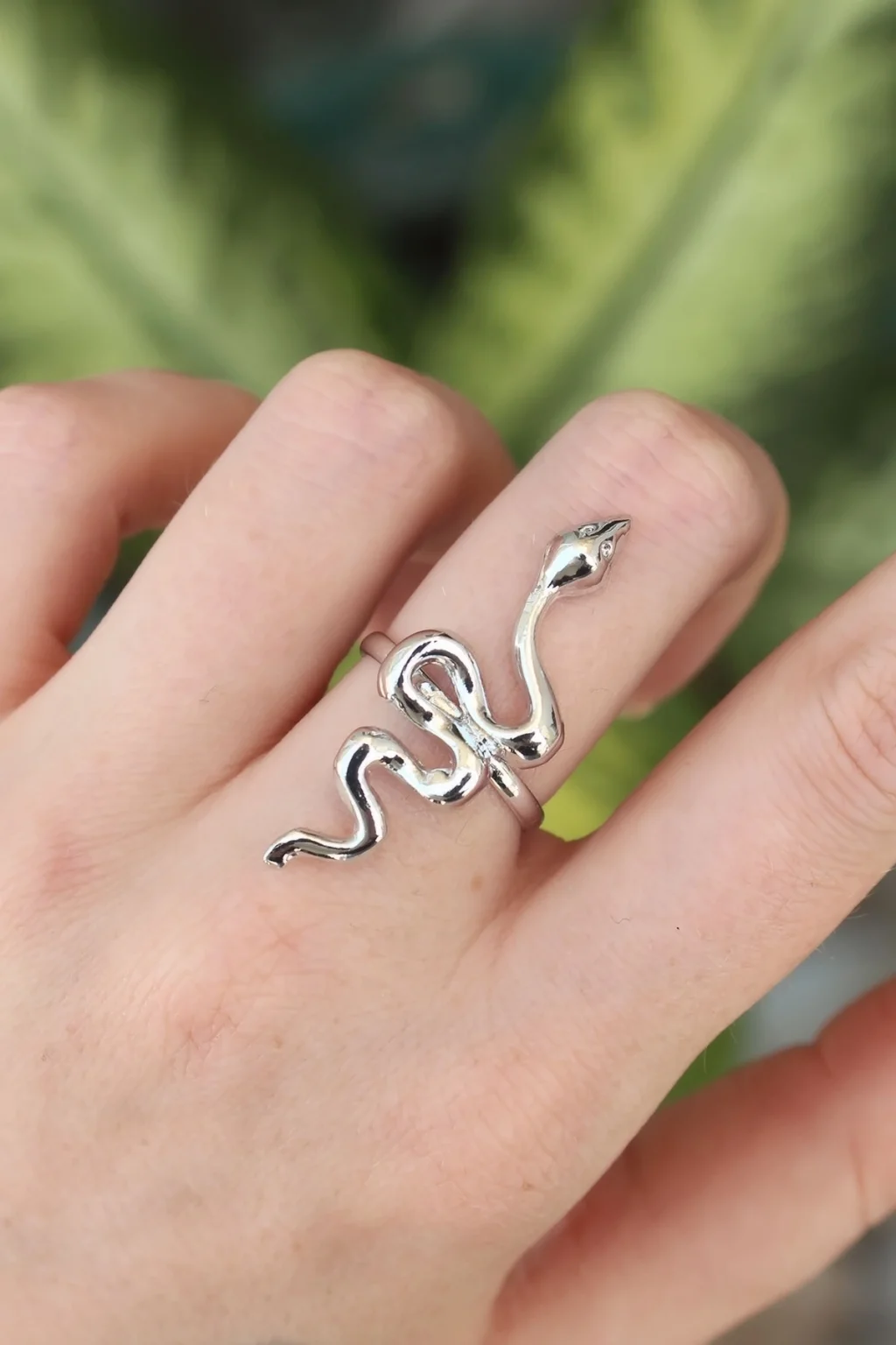Pirinç Gümüş Renk Ayarlanabilir Yılan Yüzük