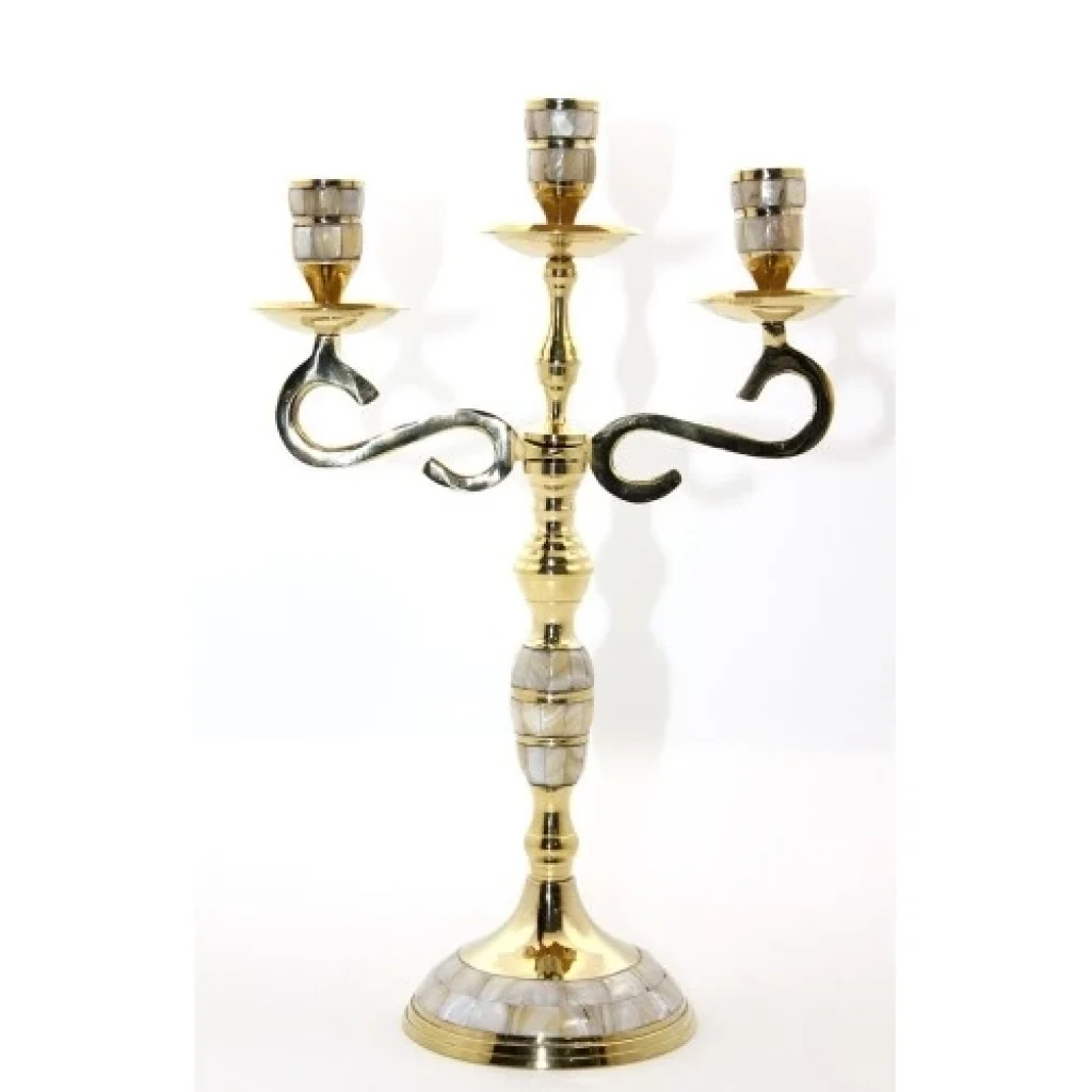 Pirinç Sedefli 3'lü Şamdan Model 3