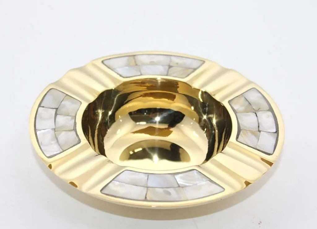 Pirinç Ve Sedef Karışımdan Üretilmiştir. Pirinç Sedefli Küllük 13 Cm