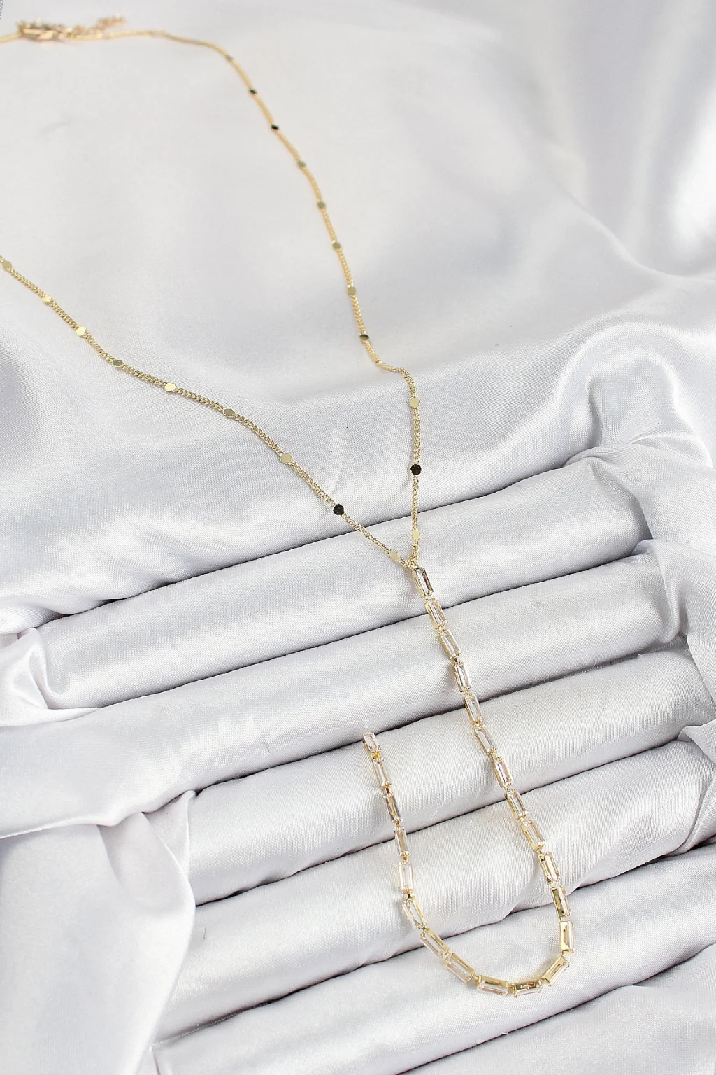 Pirinç Zirkon Taşlı Model Gold Renk Y Kolye