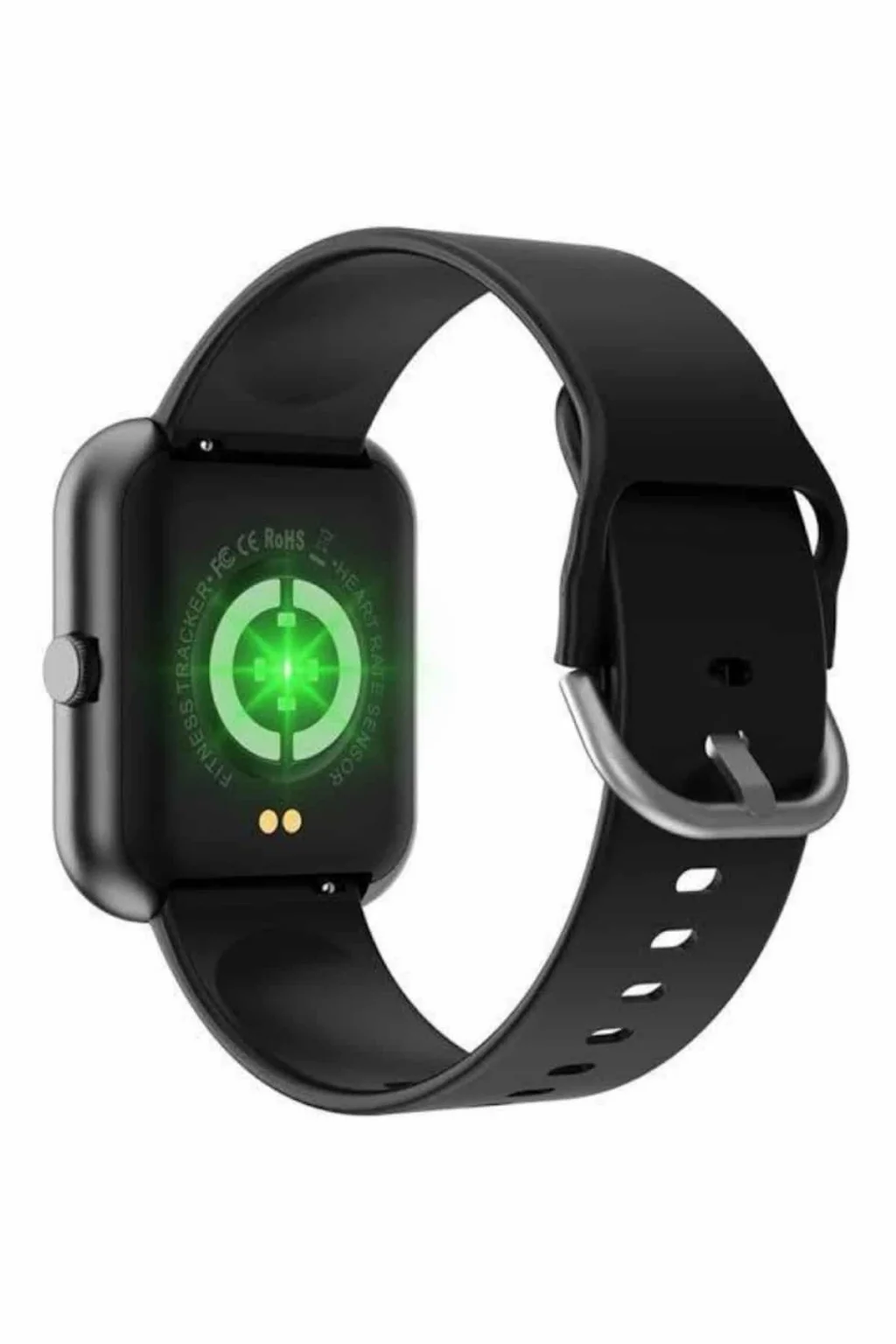 Bu şık ve fonksiyonel akıllı saat, 1.83 inch büyüklüğünde IPS 320x380 ekran çözünürlüğü ile net ve parlak bir görüntü sunar. TFT dokunmatik ekran tasarımı sayesinde kullanıcı dostu bir deneyim sağlar. İçerisinde bulunan 180 mAh lityum pil, uzun süreli kullanım sunarak sizi sürekli şarj etmeyle uğraştırmaz. Sağlık takibi konusunda oldukça gelişmiş özelliklere sahip olan bu saat, kalp atış hızı, kan basıncı, kandaki oksijen oranı gibi önemli sağlık verilerinizi sürekli izler ve size düzenli uyarılar gönderir. Ayrıca, uyku izleme özelliği ile gece boyunca uyku düzeninizi takip ederek daha sağlıklı bir uyku deneyimi sunar. Hareketsizlik uyarısı ve su içme uyarısı gibi motivasyonel özelliklerle de sağlıklı yaşamınıza katkı sağlar.