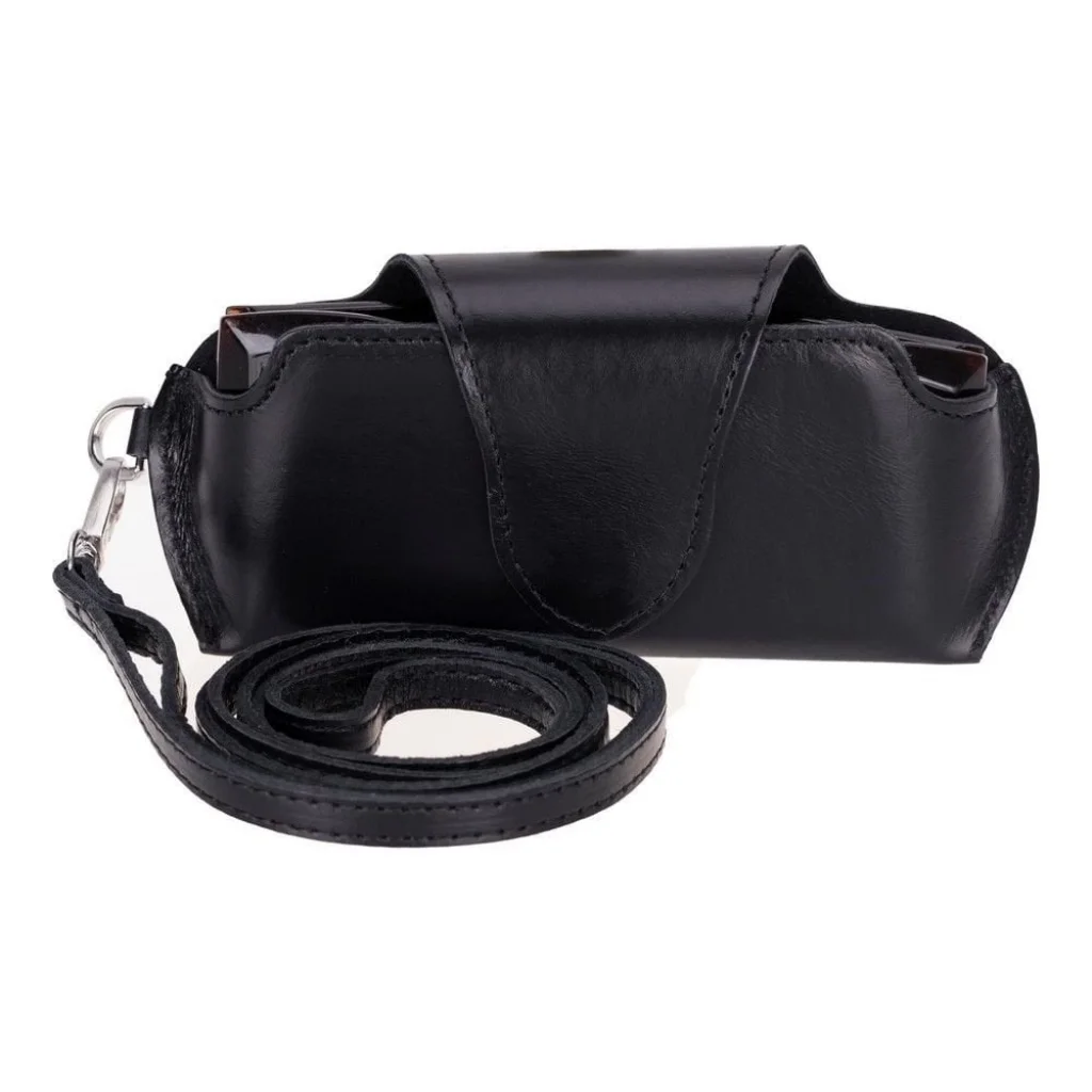 Riviera Deri Askılı Gözlük Kılıfı Parlak Siyah