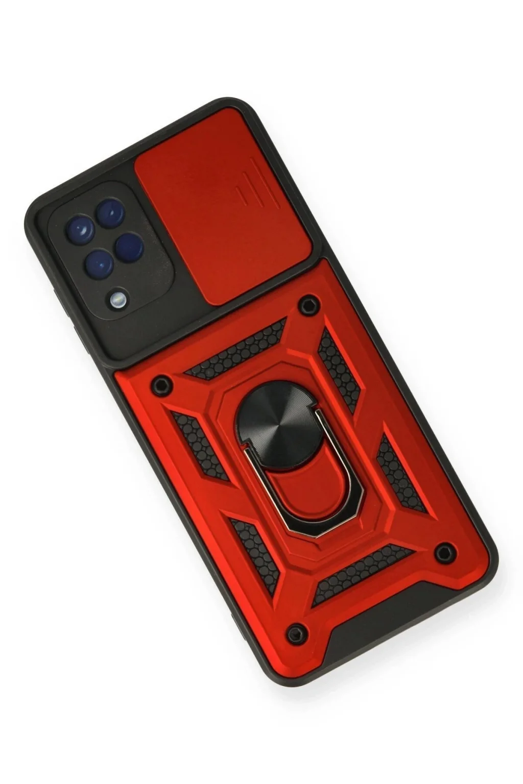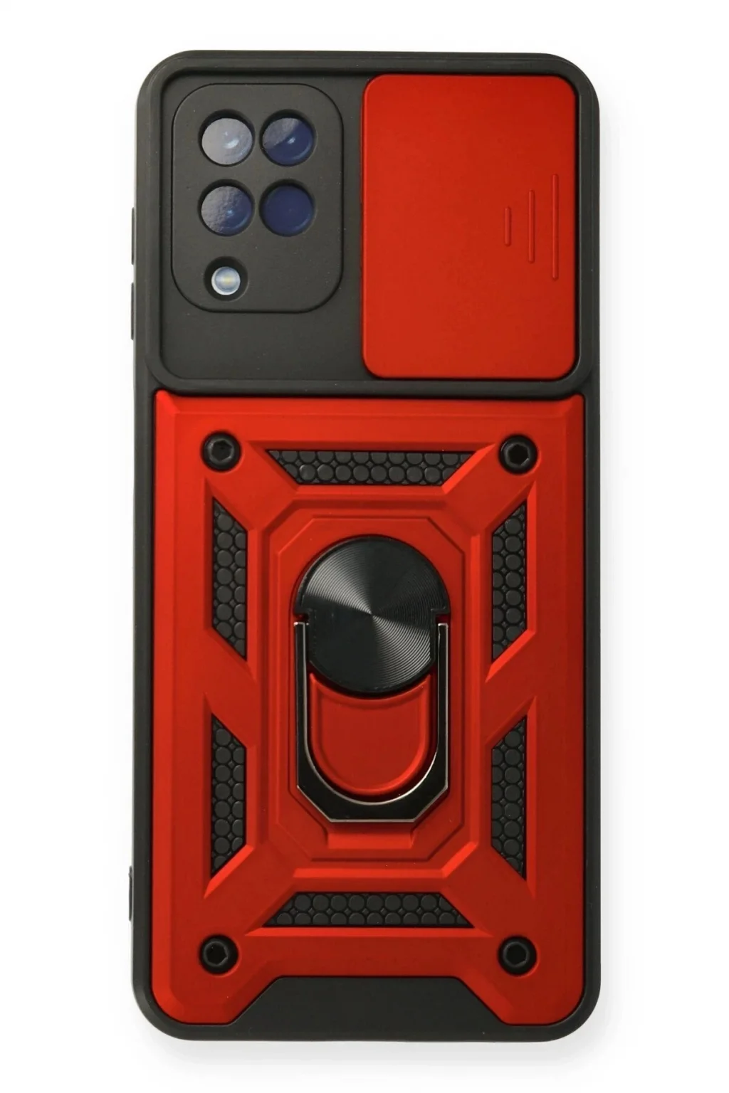 Samsung Galaxy A12 Kılıf Pars Lens Yüzüklü Silikon - Kırmızı-(5796) - EMTHBA6921-9601
