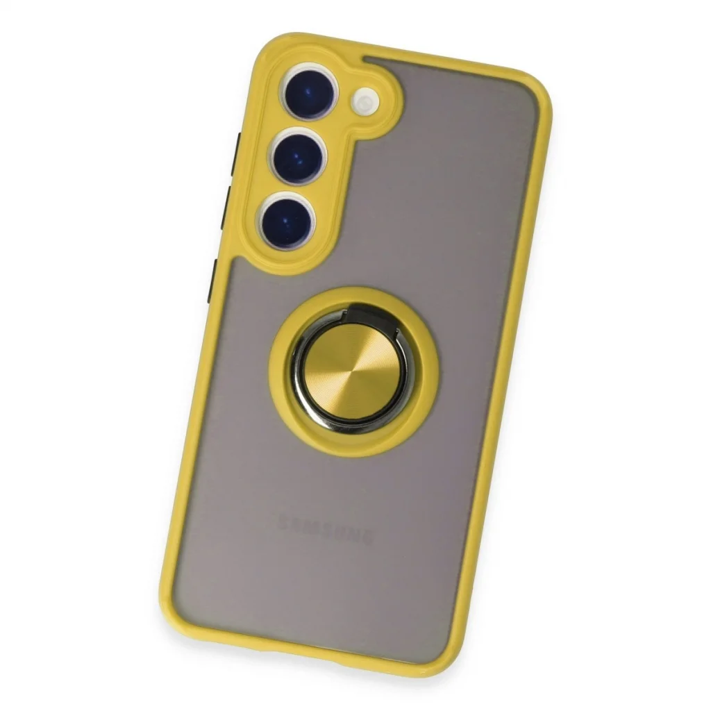 Samsung Galaxy S23 Kılıf Montreal Yüzüklü Silikon Kapak - Sarı