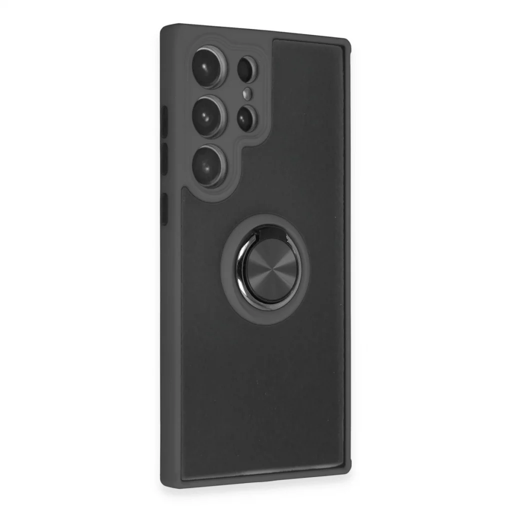 Samsung Galaxy S23 Ultra Kılıf Montreal Yüzüklü Silikon Kapak - Siyah