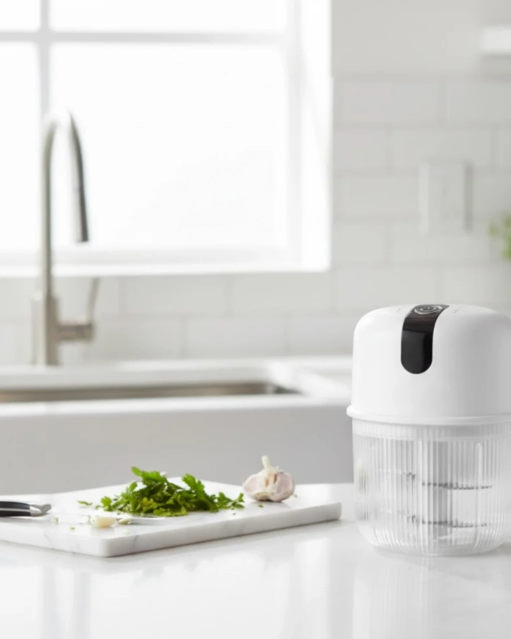 Şarjlı mini sarımsak doğrayıcı, mutfakta zaman kazanmak ve günlük yemek hazırlıklarını daha pratik hale getirmek isteyen kullanıcılar için tasarlanmış fonksiyonel bir üründür. Küçük ve hafif yapısı sayesinde mutfak tezgâhında fazla yer kaplamaz, çekmece içerisinde rahatlıkla saklanabilir ve ihtiyaç duyulduğunda kolayca kullanılabilir. Elektrikli yapısı, manuel doğrama işlemlerinde yaşanan zahmeti ortadan kaldırır ve kısa sürede homojen sonuçlar elde edilmesini sağlar.Cihaz, 1300 mAh kapasiteli uzun ömürlü bataryaya sahiptir. USB şarj özelliği sayesinde bilgisayar, powerbank veya adaptör üzerinden kolayca şarj edilebilir. Ortalama 3–4 saatlik şarj süresi sonunda tam doluluğa ulaşır ve günlük mutfak ihtiyaçları için yeterli kullanım süresi sunar. Kablosuz kullanım avantajı sayesinde priz bağımlılığı olmadan mutfağın her alanında rahatlıkla kullanılabilir.Kullanımı son derece basittir. Sarımsak, soğan, zencefil, ceviz veya benzeri malzemeler doğrayıcının 250 ml kapasiteli haznesine yerleştirilir ve üst bölümde bulunan düğmeye birkaç saniye basılması yeterlidir. Tek tuşla çalışma sistemi, hem pratiklik hem de hız kazandırır. Bu sayede yemek hazırlama süresi ciddi ölçüde kısalır.Doğrayıcıda kullanılan yeni nesil yükseltilmiş paslanmaz çelik bıçak, keskin yapısı sayesinde malzemeleri hızlı ve etkili bir şekilde parçalar. Sert yapılı gıdalarda dahi başarılı performans sunar. Hazne ile motor arasında bulunan güvenlik kapağı, kullanım sırasında ekstra güvenlik sağlar ve motorun sıvı ya da gıda kalıntılarıyla temas etmesini engeller. Bu yapı, cihazın ömrünü uzatırken temizliği de kolaylaştırır.Hazne ve bıçak bölümü ayrılabilir yapıdadır ve pratik şekilde temizlenebilir. Hijyenik kullanım sunan bu özellik, günlük mutfak kullanımında büyük avantaj sağlar. Şarjlı mini sarımsak doğrayıcı; pratikliği, kompakt tasarımı ve güvenli yapısı ile mutfakta vazgeçilmez bir yardımcıdır.