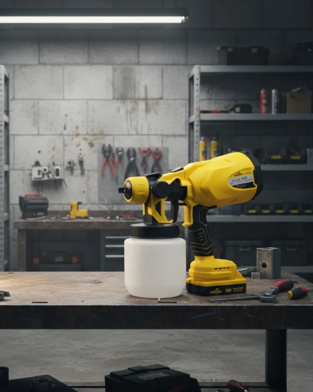 Akülü Boya Püskürtme Tabancası, evde tadilat ve yenileme işleriyle uğraşan kullanıcılar için pratik, temiz ve etkili bir boyama deneyimi sunar. Kablo karmaşası olmadan çalışan şarjlı yapısı sayesinde evin her köşesinde rahatlıkla kullanılabilir. Duvar boyama, kapı yenileme, dolap boyama ve dekoratif projeler için ideal bir çözümdür.Ayarlanabilir sprey ucu, boyanın yüzeye kontrollü şekilde uygulanmasını sağlar. Fan ayarı sayesinde boya akışı ihtiyaca göre düzenlenebilir ve yüzeyde eşit bir kaplama elde edilir. Bu özellik, özellikle ev kullanıcıları için büyük avantaj sağlar çünkü damlama ve sıçrama gibi istenmeyen sonuçların önüne geçer.Ergonomik tasarımı sayesinde ürünü kullanmak oldukça kolaydır. Hafif ve dengeli yapısı, uzun süreli çalışmalarda bile el ve bilek yorgunluğunu azaltır. Akülü sistem, priz arama derdini ortadan kaldırır ve ev içinde rahat hareket imkanı sunar.Bu püskürtme tabancası; su bazlı boyalar, vernikler ve ahşap koruyucularla uyumlu çalışabilecek şekilde tasarlanmıştır. Evdeki mobilyaların yenilenmesi, eski kapıların modern bir görünüme kavuşturulması veya bahçe eşyalarının boyanması gibi birçok alanda kullanılabilir. Boya haznesinin kolay temizlenebilir olması, kullanım sonrası bakım sürecini oldukça pratik hale getirir.Ev kullanıcıları için tasarlanan bu akülü boya tabancası, profesyonel sonuçları ev ortamına taşır. Fırça izi bırakmayan homojen kaplama özelliği sayesinde yüzeylerde pürüzsüz ve estetik bir görünüm elde edilir. Zaman kazandıran yapısı, ev tadilatlarını zahmetsiz hale getirir.
