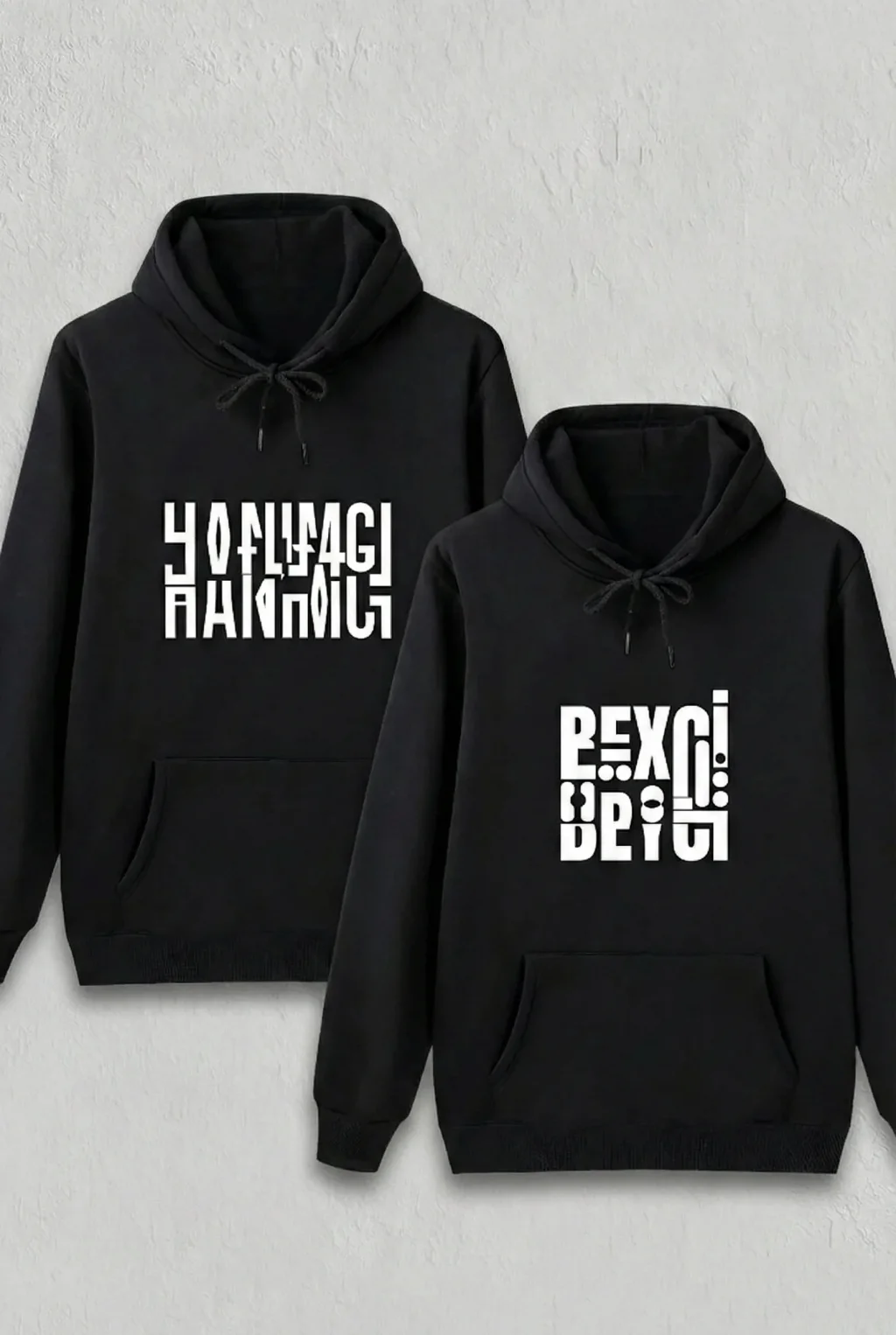 Sevgililer Günü Özel Kapüşonlu Hanımcı Baskılı Oversize Sweatshirt - Siyah