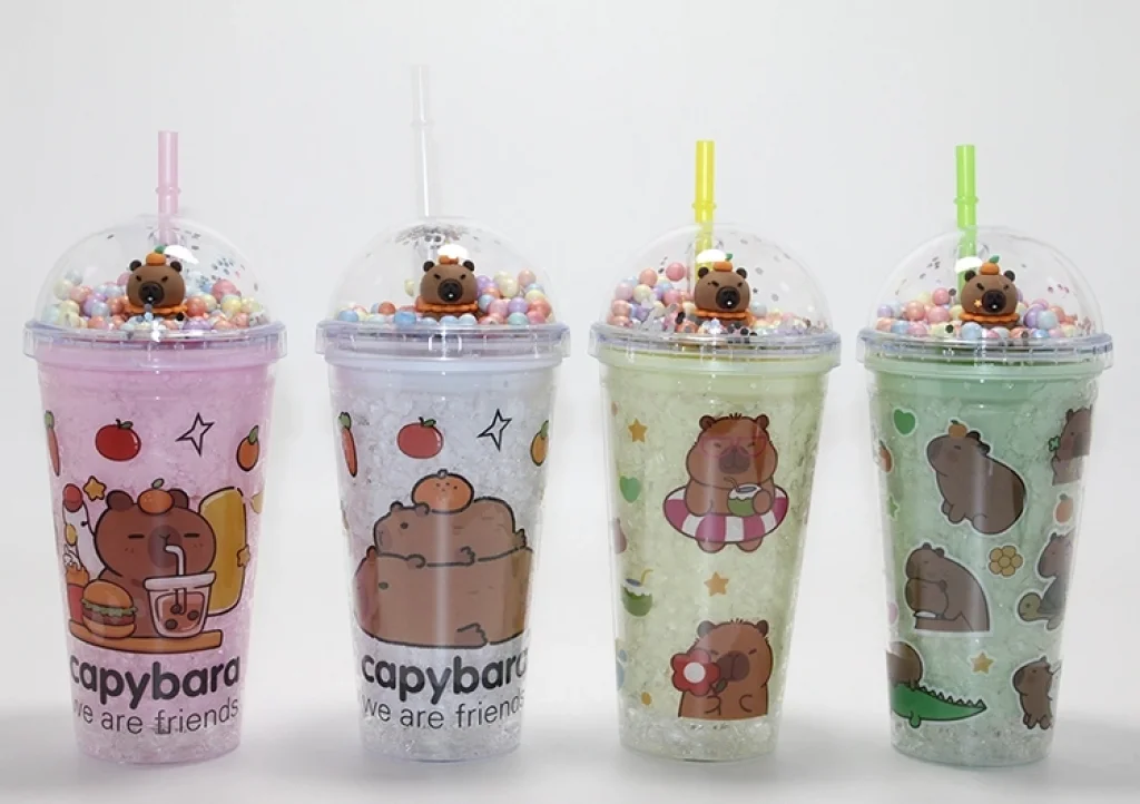 Sevimli Kapibara Pipetli Boncuklu Termos & Suluk
