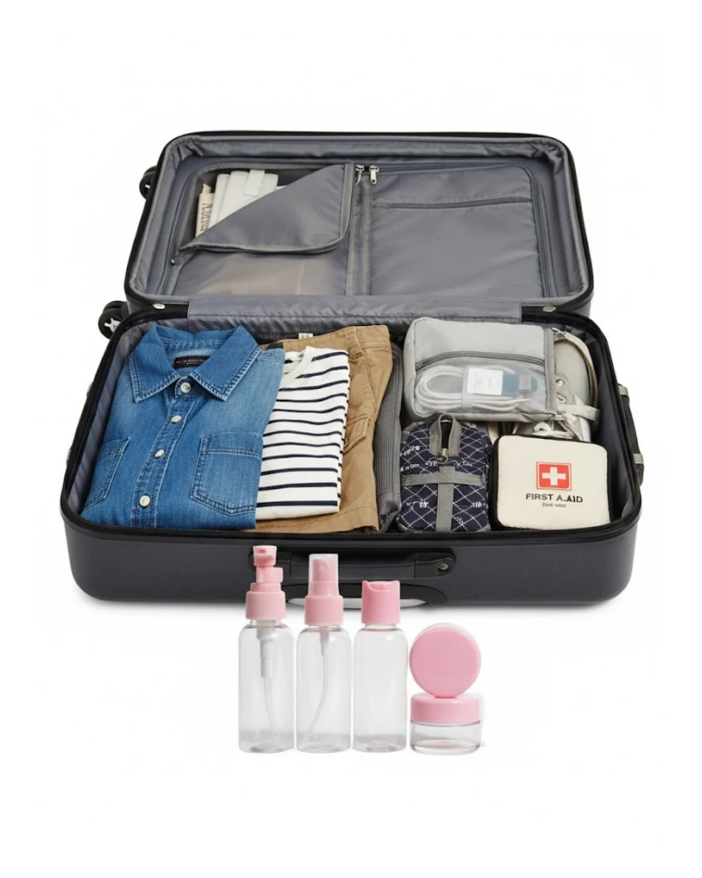 Seyahat için özel olarak tasarlanan 5’li kozmetik dolum seti, bakım ürünlerinizi küçük boyutlarda taşımanıza imkan tanır. 30 ml kapasiteye sahip şişeler sayesinde sıvı ve krem ürünlerinizi pratik şekilde yanınızda bulundurabilirsiniz.Set içerisinde sprey şişe, sıvı şişe, şampuan kabı ve iki adet krem kutusu yer alır. Farklı kullanım alanlarına uygun tasarımı sayesinde çok yönlü bir deneyim sunar.Şeffaf ve dayanıklı malzemesi sayesinde hem estetik hem fonksiyonel kullanım sağlar. Sızdırmaz kapak yapısı ile dökülme riskini azaltır.Hafif ve taşınabilir yapısı sayesinde çanta içinde minimum yer kaplar. Seyahat, spor ve günlük kullanım için idealdir.