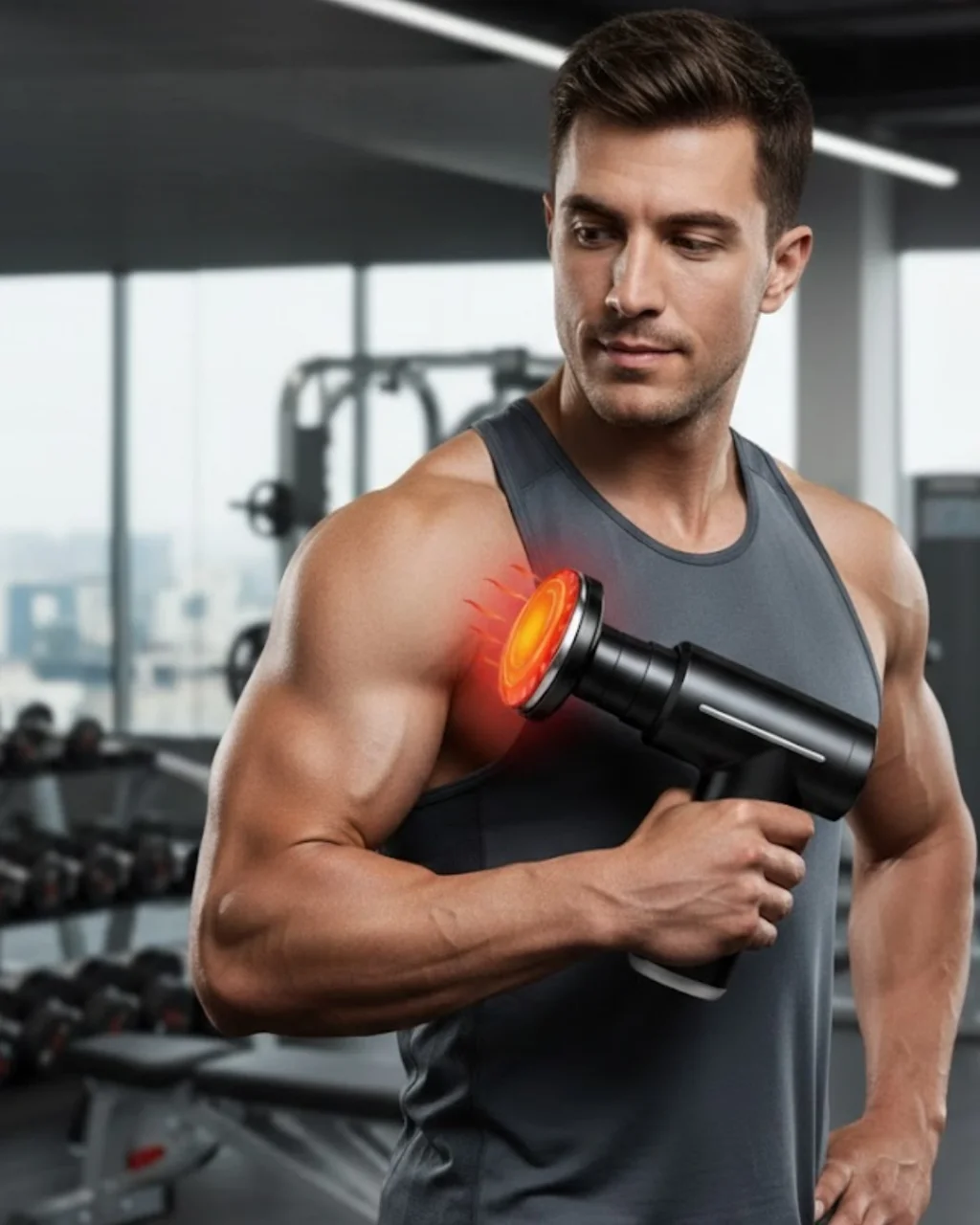 Sıcak ve soğuk terapili masaj tabancası, kas gevşetme ve ödem azaltma ihtiyacını tek cihazda birleştiren çift fonksiyonlu profesyonel bir derin doku masaj cihazıdır. Isıtmalı ve soğutmalı başlık seçenekleri sayesinde kasları hızlı şekilde rahatlatır, kan dolaşımını destekler ve spor sonrası toparlanma sürecini hızlandırır.3200 RPM gücünde çalışan motoru sayesinde derin dokuya nüfuz ederken 45 dB altı sessiz çalışma özelliği ile konforlu kullanım sunar. Evde, spor salonunda veya ofiste rahatsızlık vermeden kullanılabilir.6 farklı masaj başlığı ile boyun, sırt, bel, omurga çevresi, kol ve bacak kaslarında etkili performans sağlar. Spor sonrası laktik asit birikimini azaltmaya yardımcı olur, kas sertliğini çözer ve performans artışına destek olur.1800 mAh bataryası ile uzun süreli kullanım sunan cihaz USB-C hızlı şarj desteği ile kısa sürede yeniden kullanıma hazır hale gelir. Ergonomik ve hafif tasarımı sayesinde uzun süreli kullanımlarda bile el yormaz.Günlük stres ve yorgunluk kaynaklı kas gerginliklerinde etkili bir rahatlama çözümüdür.
