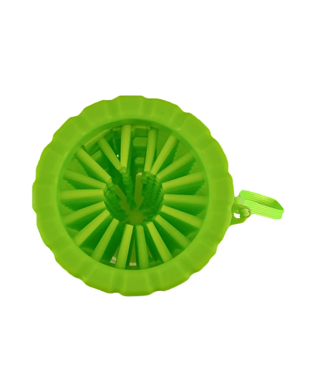 Silikon kıllı köpek pati temizleme kabı, dışarıdan eve girerken oluşan çamur, toprak ve kir sorununa pratik bir çözüm sunar. Özellikle orta ve büyük ırk köpekler için tasarlanan bu taşınabilir pati yıkama kabı, yumuşak ve etkili silikon fırça yapısı sayesinde hem güvenli hem de konforlu bir temizlik sağlar.Ürün içerisinde yer alan yuvarlak başlıklı silikon fırçalar, klasik düz fırçalara göre daha etkili temizlik performansı sunar. Yuvarlak yapı, patinin her noktasına temas ederek kir ve çamurun daha kolay çözülmesine yardımcı olur. Aynı zamanda yumuşak silikon kıllar, temizlik sırasında köpeğinizin patisine nazikçe masaj yapar. Bu sayede köpeğiniz temizlikten rahatsız olmaz, aksine süreci daha konforlu geçirir.Kullanımı oldukça kolaydır. Kabın içerisine bir miktar su eklenir, çamurlu pati kaba yerleştirilir ve hafif yukarı aşağı hareket veya döndürme işlemi uygulanır. Silikon kıllar patiyi çevreleyerek etkili temizlik sağlar. Ardından pati çıkarılır ve havlu ile kurulanır. Aynı işlem diğer patiler için tekrar edilir.Bu köpek pati temizleme aparatı sayesinde halı, koltuk ve parke zeminlerde çamurlu ayak izi oluşumu engellenir. Özellikle yağmurlu havalarda, park ve yürüyüş sonrası hijyen açısından büyük kolaylık sağlar.Taşınabilir tasarımı sayesinde evde, araçta, kamp alanında veya seyahat sırasında rahatlıkla kullanılabilir. Pratik, hijyenik ve güvenli bir çözümdür.