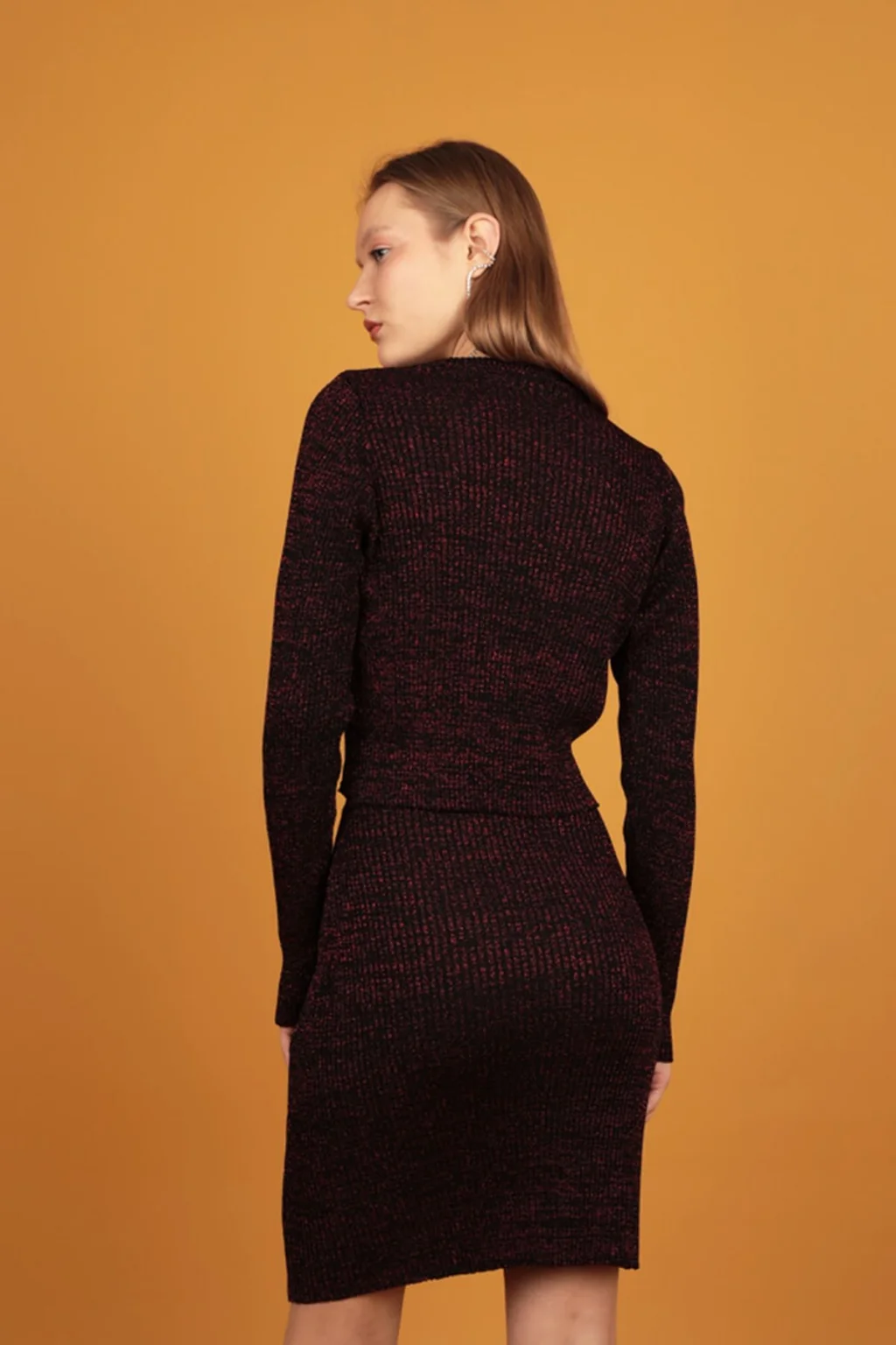 Simli Triko Kadın Etek-Kırmızı