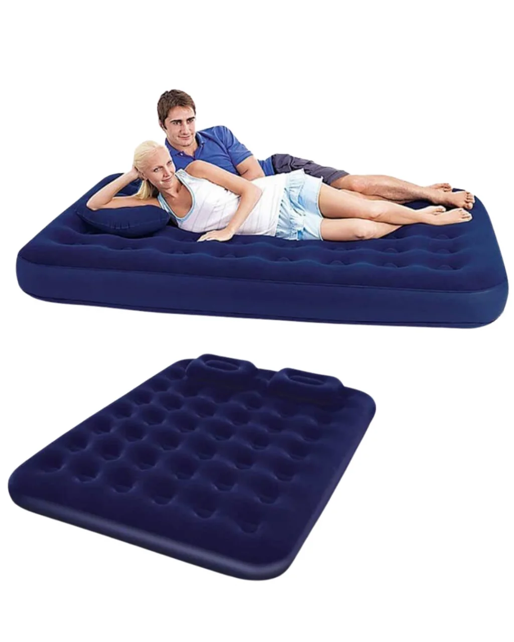 Çok amaçlı kullanım için tasarlanan bu çift kişilik şişme yatak, kamp ve ev içi ihtiyaçlar için ideal bir tercihtir. Dayanıklı vinil gövde, uzun ömürlü kullanım sunarken flokeli yüzey konforu artırır. Sarmal kirişli iç yapı, dengeli ve rahat bir yatış sağlar.Vidalı vana sistemi ile hızlı şişirilip indirilebilir. Az yer kaplayan yapısı sayesinde kolayca saklanır. Konforlu, sağlam ve pratik bir uyku çözümü arayanlar için uygundur.