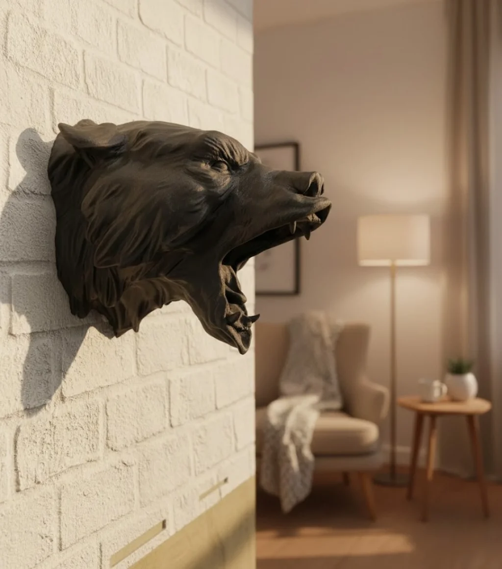 Bu 3D siyah ayı duvar heykeli, şık görünümü ve güçlü tasarımıyla dekoratif objeler arasında öne çıkar. 25 cm x 19 cm ölçüsü, duvarda hem büyük hem de estetik bir duruş sağlar. Ürünün kabartmalı kürk dokusu ve yüz ifadeleri, tasarımı daha gerçekçi ve etkileyici kılar.Mat siyah rengi, hem modern hem de klasik dekorasyon stillerine kolayca uyum sağlar. Duvarda minimalist bir sanat eseri gibi durarak ortama sofistike bir hava katar. Pratik montajı sayesinde ev, ofis, mağaza, kafe ve stüdyo gibi alanlara hızlıca uygulanabilir.Ayı figürü; koruma, güç ve dayanıklılık anlamı taşır. Bu sembolizm, ürünü hem dekoratif hem de anlamlı bir obje haline getirir. Koleksiyon amaçlı kullanımlar, hediye alternatifleri ve özel mekan tasarımları için ideal bir seçenektir.