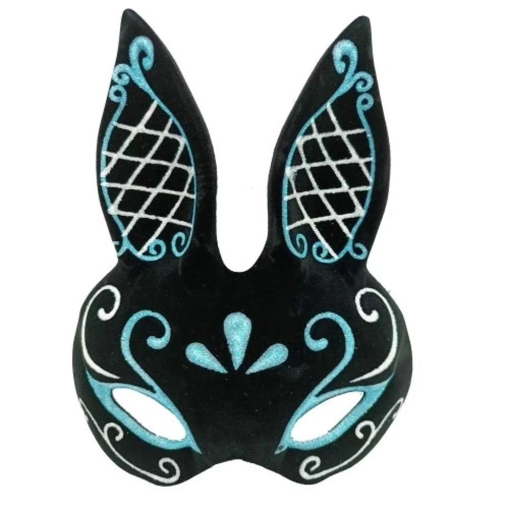 Siyah Mavi Beyaz Simli Tavşan Maskesi