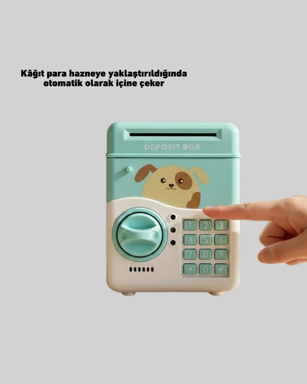 Su yeşili rengiyle dikkat çeken bu ATM kasa tasarımlı elektronik şifreli kumbara, çocukların para biriktirme alışkanlığını erken yaşta kazanmasını destekler. Elektronik şifre sistemi sayesinde çocuklar kendi şifrelerini belirleyerek paralarını güvenli bir şekilde saklayabilir. Bu sistem, çocuklara güvenli para yönetimi bilinci kazandırır.Kumbara, gerçek bir ATM gibi çalışacak şekilde tasarlanmıştır. Bozuk paralar kolayca içine atılabilirken, kâğıt paralar hazneye yaklaştırıldığında otomatik olarak içeri çekilir. Otomatik para girişi, ürünü klasik kumbaralardan ayıran en eğlenceli özelliklerden biridir. Işıklı ve sesli geri bildirimler, her kullanımda çocukların ilgisini canlı tutar.Su yeşili ATM kasa tasarımı, çocuk odalarında hem dekoratif hem de modern bir görünüm sunar. Geniş iç hacmi sayesinde uzun süre dolmadan kullanılabilir. Dayanıklı ABS plastik gövdesi, güvenli ve uzun ömürlü kullanım sağlar.Eğitici ve eğlenceli yapısıyla bu kumbara, çocuklara para biriktirme alışkanlığını sevdirirken aynı zamanda anlamlı bir hediye alternatifi sunar.