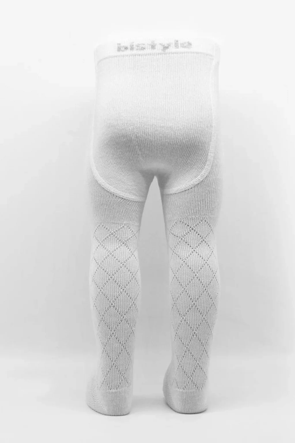 Tekli Ekose Kabartma Penye Külotlu Çorap BS50105 Beyaz