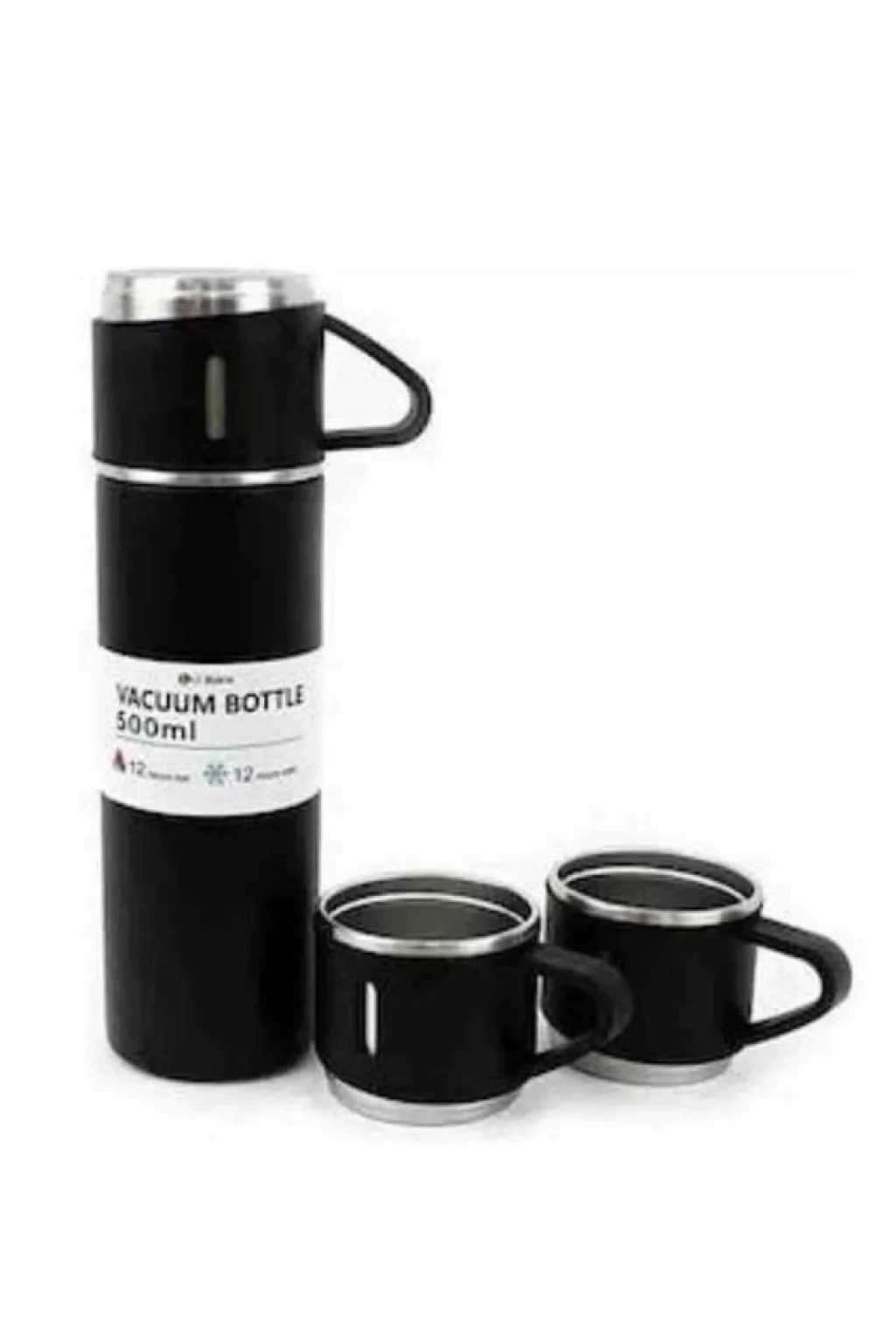 Termos Paslanmaz Çelik Termos Siyah Renk 3 Bardaklı Termos Seti