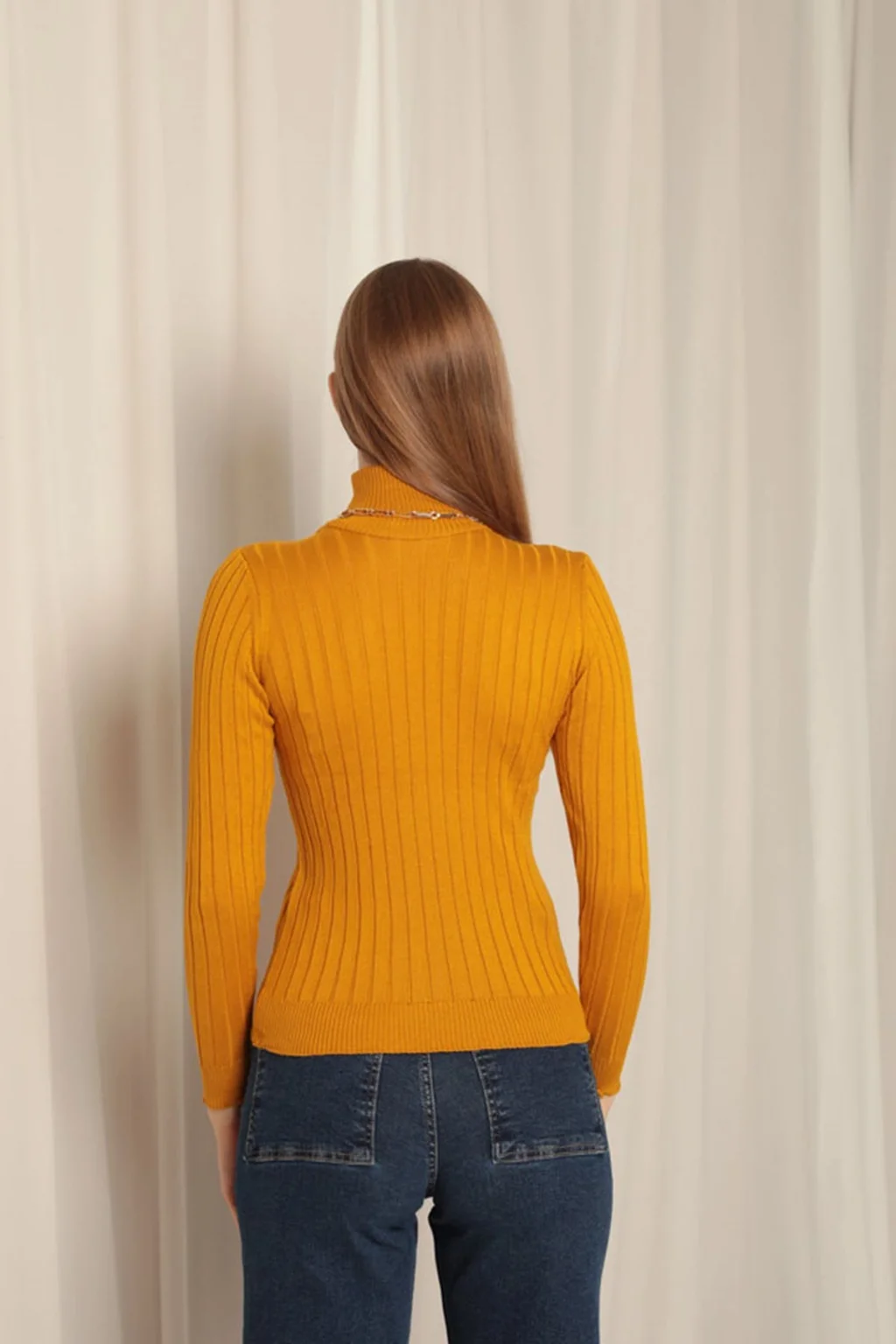 Triko Kumaş Balıkçı Yaka Kadın Hardal Bluz