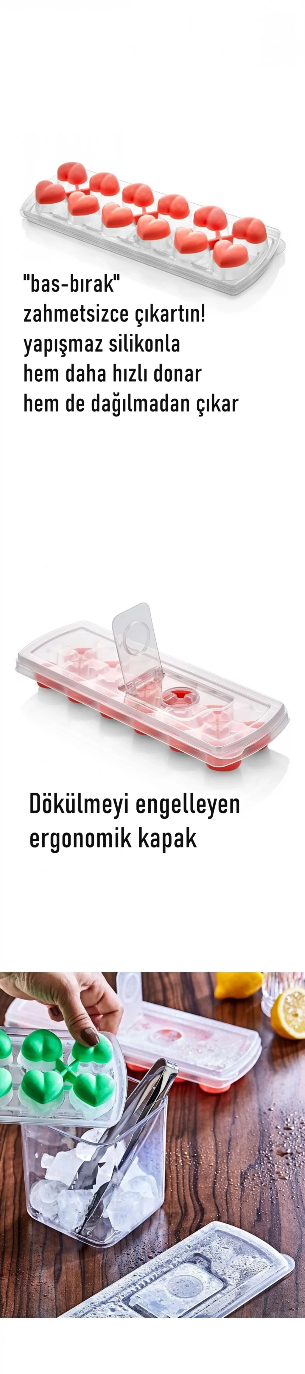 Turk Buz Kalıbı - Bas-Bırak Kapaklı Silikon Buz Kalıbı 4 lü SET