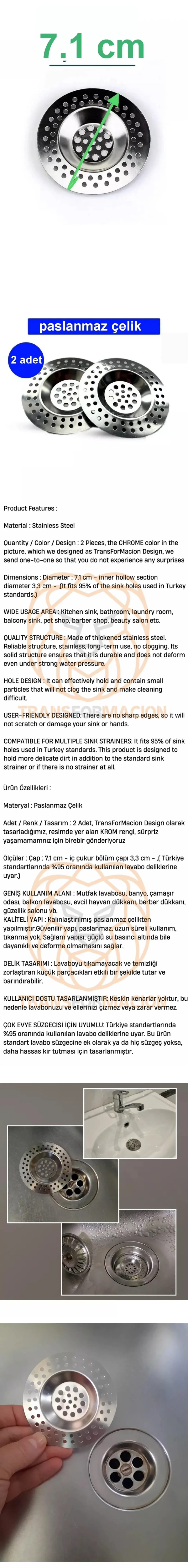 Turk Çelik Lavabo Süzgeci 2 ADET