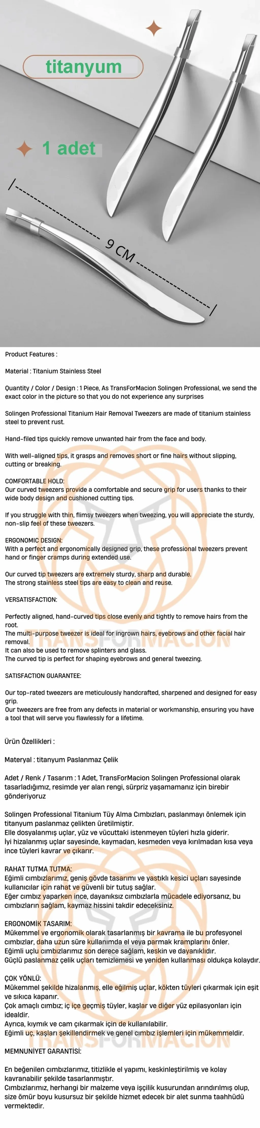 Turk Cımbız Titanyum Çelik Solingen Professional