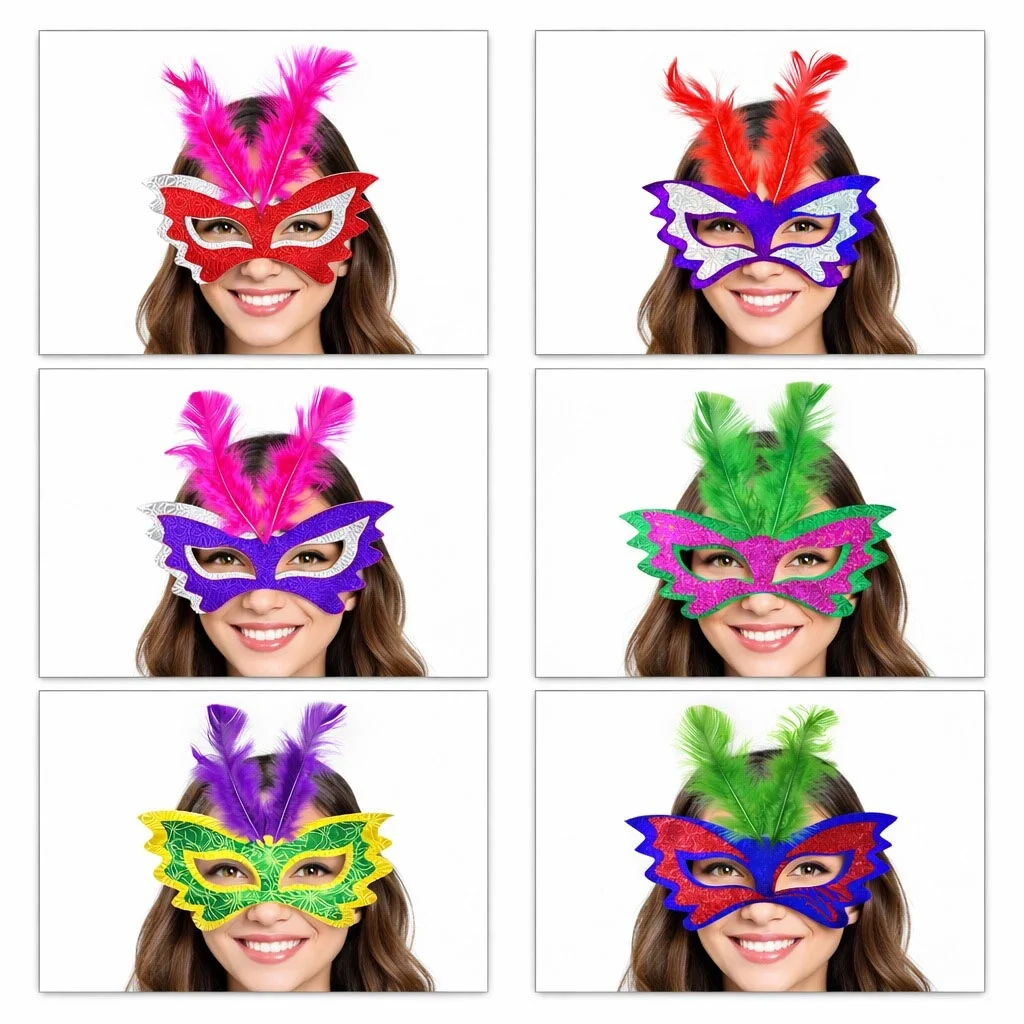Tüylü Renkli Karton Parti Maskesi – 6 Renk
