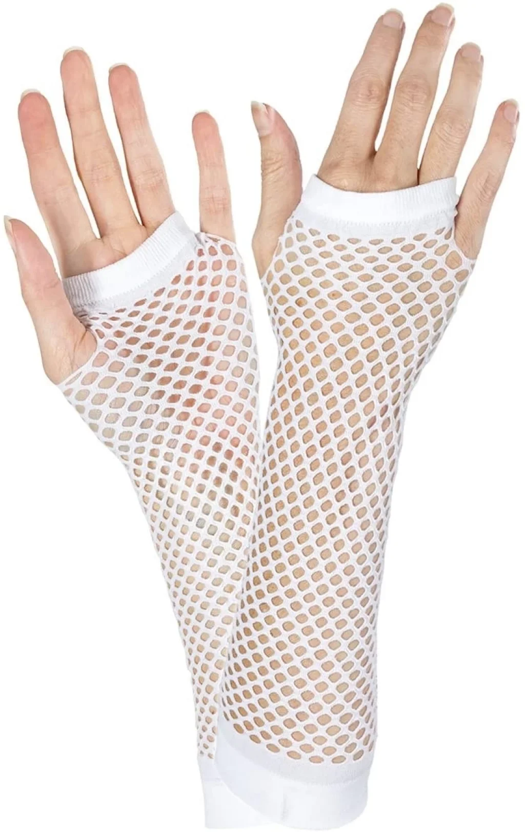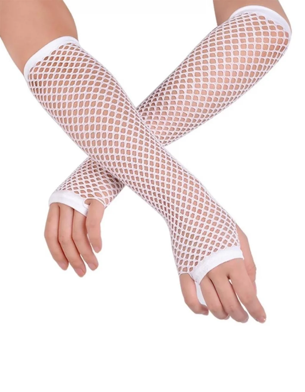 Uzun Zarif Dantel Eldiven Parmaksız Beyaz 35 cm
