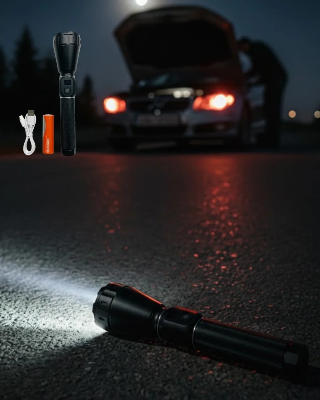 60W Güçlü LED El Feneri 6000 Lümen Uzun Mesafe Aydınlatma Seti