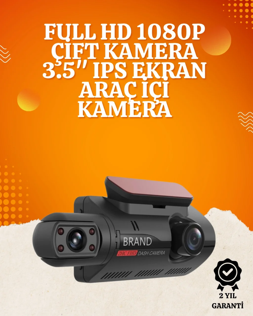 WiFi Destekli Araç Kamerası – 3 inç Ekran 1080P Ön ve 720P İç Kamera