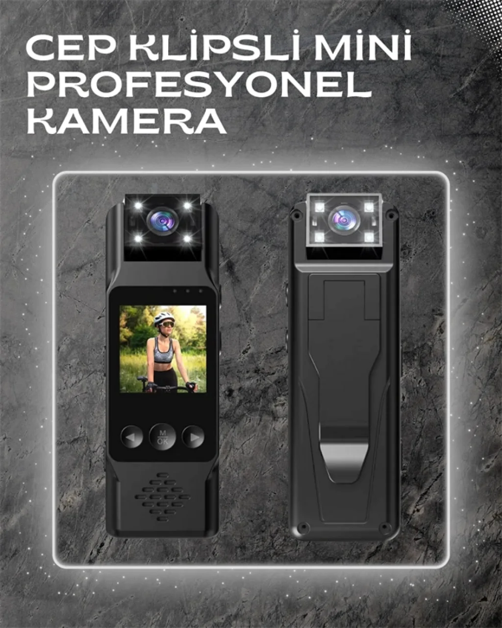 Yenilikçi ve kompakt tasarımıyla öne çıkan bu yüksek teknolojili mini kamera, hem profesyonel hem günlük kullanım için kusursuz bir seçenek sunar. 180 derece dönebilen lensi sayesinde çekim açısını istediğiniz gibi ayarlayabilir, sabit kadrajlara mahkum olmadan daha özgür kayıtlar yapabilirsiniz.1.3 inçlik renkli TFT ekranı (240x240 çözünürlük), canlı görüntü ön izlemesi ve kolay menü kullanımı ile kullanıcı dostu bir deneyim sunar. Video kayıt çözünürlüğü 1920x1080P ve 1280x720P destekleyerek net, detaylı ve akıcı videolar elde etmenizi sağlar. Video dosyaları AVI formatında kaydedilirken, fotoğraflar JPG formatında ve 1M, 2M, 3M kalite seçenekleriyle çekilebilmektedir.Döngüsel kayıt özelliği ile bellek dolsa bile eski kayıtlar silinerek yeni kayıtlar yapılabilir. 3, 5, 10 ve 15 dakikalık döngü seçenekleri mevcuttur. Otomatik beyaz dengesi yanında güneşli, bulutlu, tungsten ve floresan gibi farklı aydınlatma koşulları için manuel seçenekler de sunar.Hareket algılama ve kayıt fonksiyonları sayesinde güvenlik amaçlı da rahatlıkla kullanılabilir. Zaman damgası, tuş tonu, otomatik kapanma, ekran zamanlayıcısı gibi detaylı ayarlar kullanıcıya tam kontrol sağlar.1200mAh lityum polimer bataryası, uzun süreli çekim yapmanızı sağlar. 3.7V voltajında çalışan cihaz, USB üzerinden şarj edilebilir. Düşük enerji tüketimi ve 50g’lık hafif yapısıyla hem taşınabilirlik hem de verimlilik sunar. TF kart desteği 128GB’a kadar çıkmakta olup, geniş depolama imkânı sağlar.Dayanıklı gövdesi, -25°C ile +75°C arasında çalışma sıcaklığına dayanıklıdır. Ürün boyutu sadece 963118mm olup, cebinizde dahi rahatça taşınabilir.