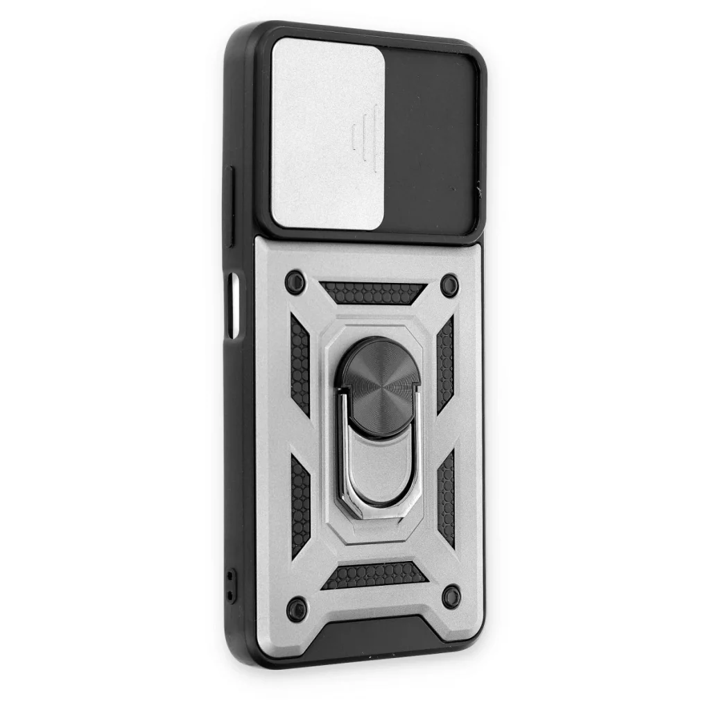 Xiaomi Poco M4 Pro 5g Kılıf Pars Lens Yüzüklü Silikon - Gümüş