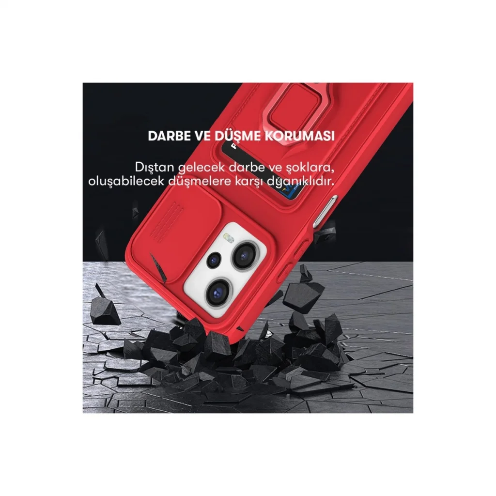Xiaomi Poco X5 5g Kılıf Zuma Kartvizitli Yüzüklü Silikon - Kırmızı