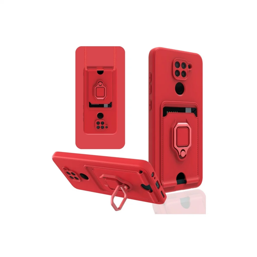 Xiaomi Redmi Note 9 Kılıf Zuma Kartvizitli Yüzüklü Silikon - Kırmızı