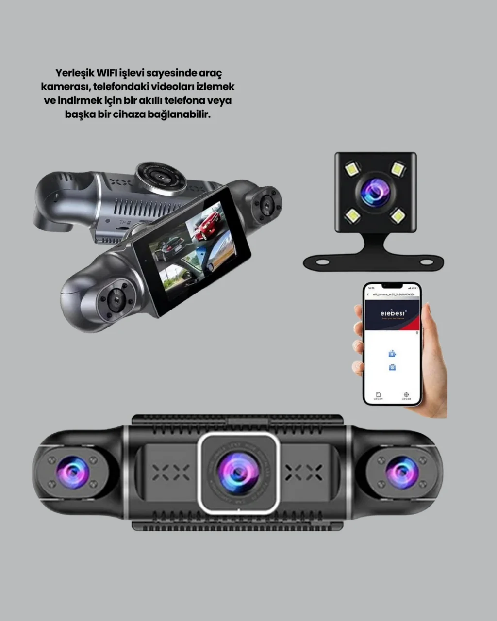 4 kanallı araç kamerası, sürüş güvenliğini en üst seviyeye taşımak amacıyla tasarlanmış kapsamlı bir kayıt sistemidir. Ön, arka ve yan kameralar sayesinde aracın tüm çevresi aynı anda kaydedilir. Bu sayede kör noktalar ortadan kalkar.1080P Full HD görüntü kalitesi ile detaylı ve net kayıt sunar. Gece görüş teknolojisi sayesinde düşük ışıkta bile net görüntüler elde edilir. Bu özellik, gece yolculuklarında ekstra güvenlik sağlar.Yerleşik GPS sistemi ile aracın hızı, rotası ve konumu otomatik olarak kayıt altına alınır. Bu bilgiler videoyla entegre edilerek önemli kanıt niteliği taşır.WiFi özelliği, kamerayı mobil cihazlara bağlamayı kolaylaştırır. Telefon üzerinden canlı görüntü izlemek, video indirmek ve ayarları değiştirmek mümkündür.Park izleme ve hareket algılama özellikleri, aracınız park halindeyken bile güvenlik sağlar. G sensörü, ani sarsıntıları algılayıp kayıt başlatır ve görüntüyü kilitler.Döngü kayıt teknolojisi, hafıza kartı dolduğunda eski videoların üzerine yazılmasını sağlar. 32GB–64GB kart desteklemesi sayesinde uzun süreli kullanım için uygundur.Bu araç kamerasi, hem bireysel kullanıcılar hem de ticari araç sahipleri için ideal bir güvenlik çözümüdür.