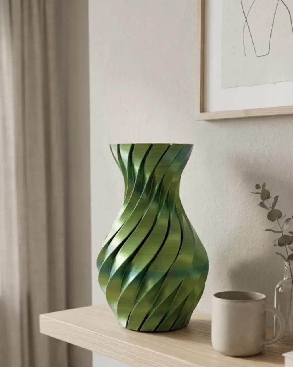 3D Spiral Yeşil Vazo Modern Tasarım Dekoratif Ev ve Ofis Aksesuarı