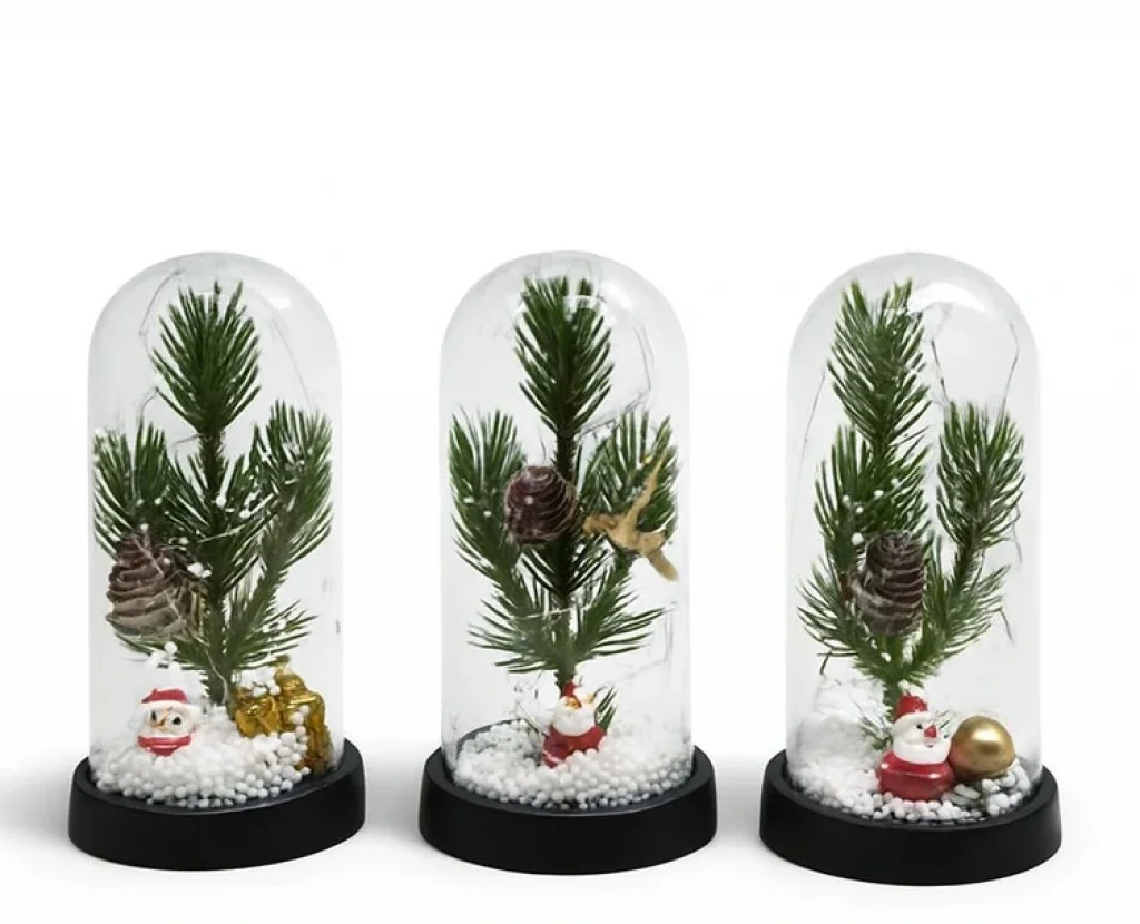 Yılbaşı Temalı Işıklı Dekoratif Cam Fanus Alk5074 Ürün Ölçüleri 19*9 Cm