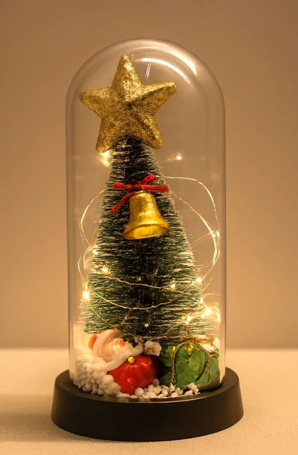 Yılbaşı Temalı Işıklı Dekoratif Cam Fanus - Model 1