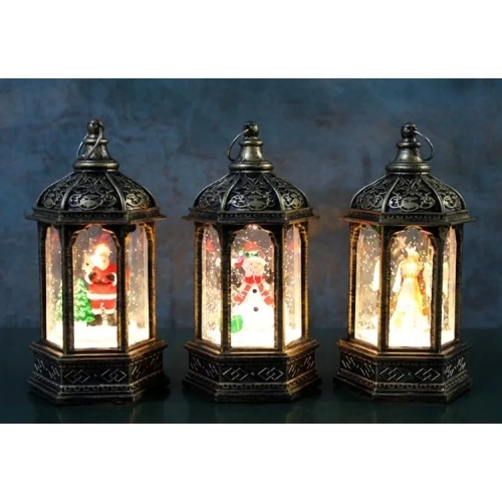 Yılbaşı Temalı Işıklı Kar Küresi Siyah Tasarım