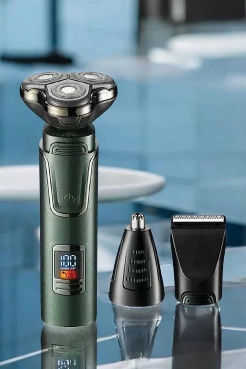 3 Başlıklı Elektrikli Tıraş Makinesi Su Geçirmez Dijital Göstergeli
