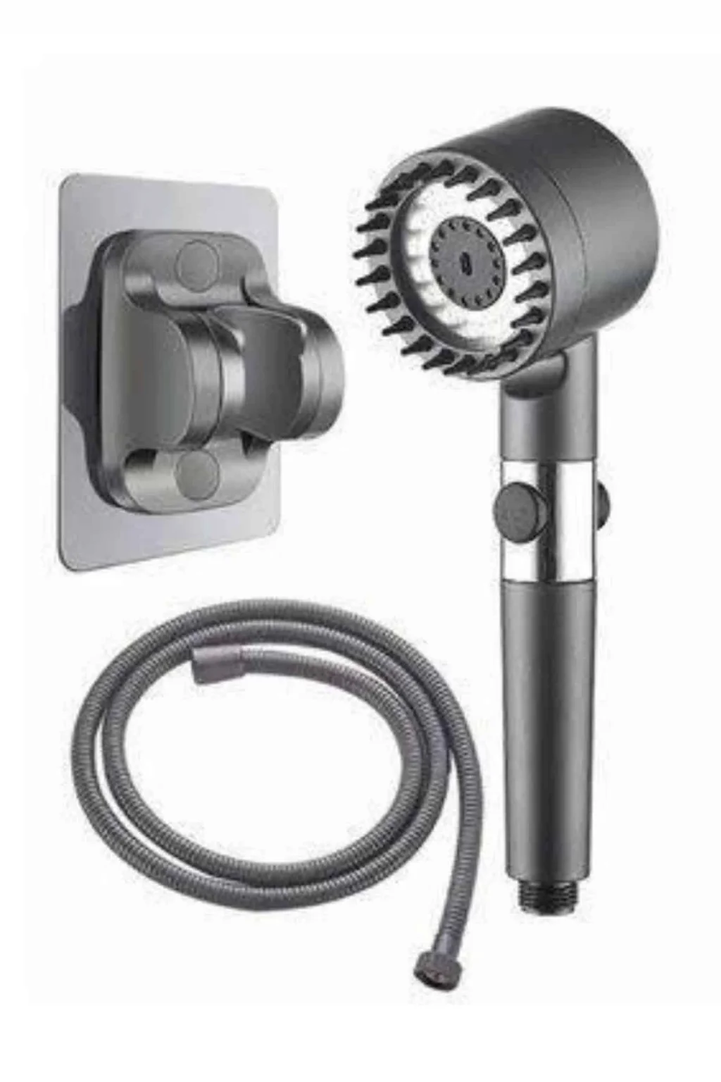 Krom kaplama malzemesiyle üretilmiş olan bu duş başlığı, hem estetik görünümüyle banyonuza şıklık katarken hem de uzun ömürlü ve dayanıklı bir kullanım sunar. Paslanmaya karşı dirençli yapısı sayesinde ilk günkü parlaklığını uzun süre korur ve günlük kullanımda yüksek performans sağlar. Üç farklı masaj modu sayesinde duş keyfinizi bambaşka bir seviyeye taşıyan bu ürün; rahatlatıcı, canlandırıcı ve derin doku masajı seçenekleriyle kişisel konforunuzu ön plana çıkarır. Günün stresini üzerinizden atmak veya güne zinde başlamak için ihtiyacınıza göre kolayca modlar arasında geçiş yapabilirsiniz.Kullanıcı dostu tasarımı sayesinde kurulumu oldukça basittir; ekstra bir ekipmana gerek kalmadan dakikalar içinde monte edilebilir. Ergonomik tutuşu ve su tasarrufu sağlayan yapısıyla hem çevre dostu hem de ekonomik bir kullanım sunar. Pratik kullanımı sayesinde her banyoya kolaylıkla entegre edilebilen bu duş başlığı, fonksiyonel ve şık bir banyo aksesuarı arayanlar için ideal bir seçimdir.