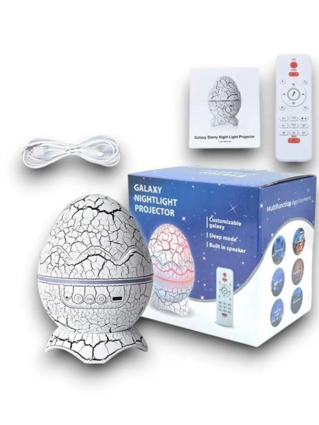 【Dinozor yumurta gece lambası projektör】 : Bulutsu'nun ve yıldız ışıklarının kombinasyonu tek başına veya kombinasyon halinde (14 renge kadar) açılabilir ve nebula akışının projeksiyonu rahatlatıcı bir atmosfer, 4 hız ve parlaklık yaratır. Yüksek çözünürlüklü yıldızlı galaksi duvar ve tavana yansıtılabilir, galakside seyahat ediyormuş gibi hissedeceksinizDinamik ritmli 【Bluetooth müzik hoparlörü/oyuncu 】 : Cihazı bir müzik çalara dönüştürmek için Bluetooth üzerinden bağladıktan sonra en sevdiğiniz müziği çalın. Işıklar müzik ritmini takip ederek yanıp sönecek ve dans edecek. Çocuklarımızla küçük bir müzik partisi açabiliriz【Beyaz gürültü projektörü Light】 19 yatıştırıcı sesler ve sıcak gece lambası dinlendirici gecelerde sizi sakinleştirecek, güzel yıldızlı gökyüzünde iyi bir şekilde düşmenize yardımcı olmak için yatmadan önce istediğiniz birini seçebilirsiniz.【Uzaktan kumanda ve otomatik kapanma zamanı】 : Renk aydınlatması, projeksiyon modu, parlaklık, hız, müzik seçimi, ses seviyesi ve zamanlayıcıyı kontrol etmenizi sağlayan bir uzaktan kumanda alırsınız. Otomatik kapanma zamanlayıcısı 1 veya 2 saate ayarlanabilir ve zamanlayıcıyı ayarlamayı unutursa, cihaz 4 saat sonra otomatik olarak kapanacaktır. Uzaktan kumanda ve otomatik zamanlayıcı kullanımı kolaydır ve belirli bir zamanda kapatmak için bir zamanlayıcı ayarlamaya çalışırken esneklik sağlar【İdeal hediye 】 : Desteğiniz için teşekkür ederiz, size kişiselleştirilmiş ve kaliteli ürünler sunmaya devam ediyoruz. Dinozor yumurtası dış tasarım, 3D renk boyama, artı serin kuzey ışıkları etkisi, sadece odanızı iyi dekore edemez ama aynı zamanda aileniz veya arkadaşlarınız için bir hediye olabilir.Paket detayları.1 * dinozor yumurtaları projektör1 * uzaktan kumanda1 * USB kablosu
