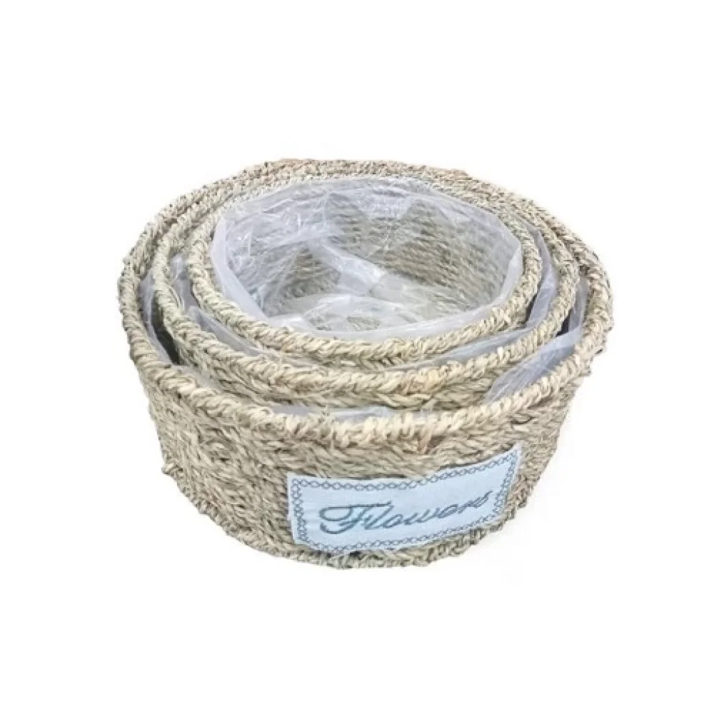 Yuvarlak Doğal Hasır Saksı Seti - 3'lü