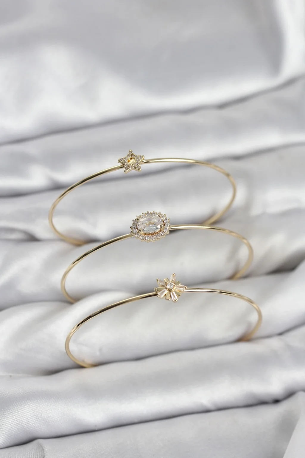 Zirkon Taşlı Kutup Yıldızı Model Gold Renk 3'lü Kadın Bileklik Kombini